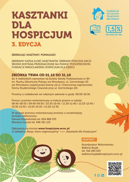 Wspomóżmy Wrocławskie Hospicjum dla dzieci – akcja zbieramy kasztany :)