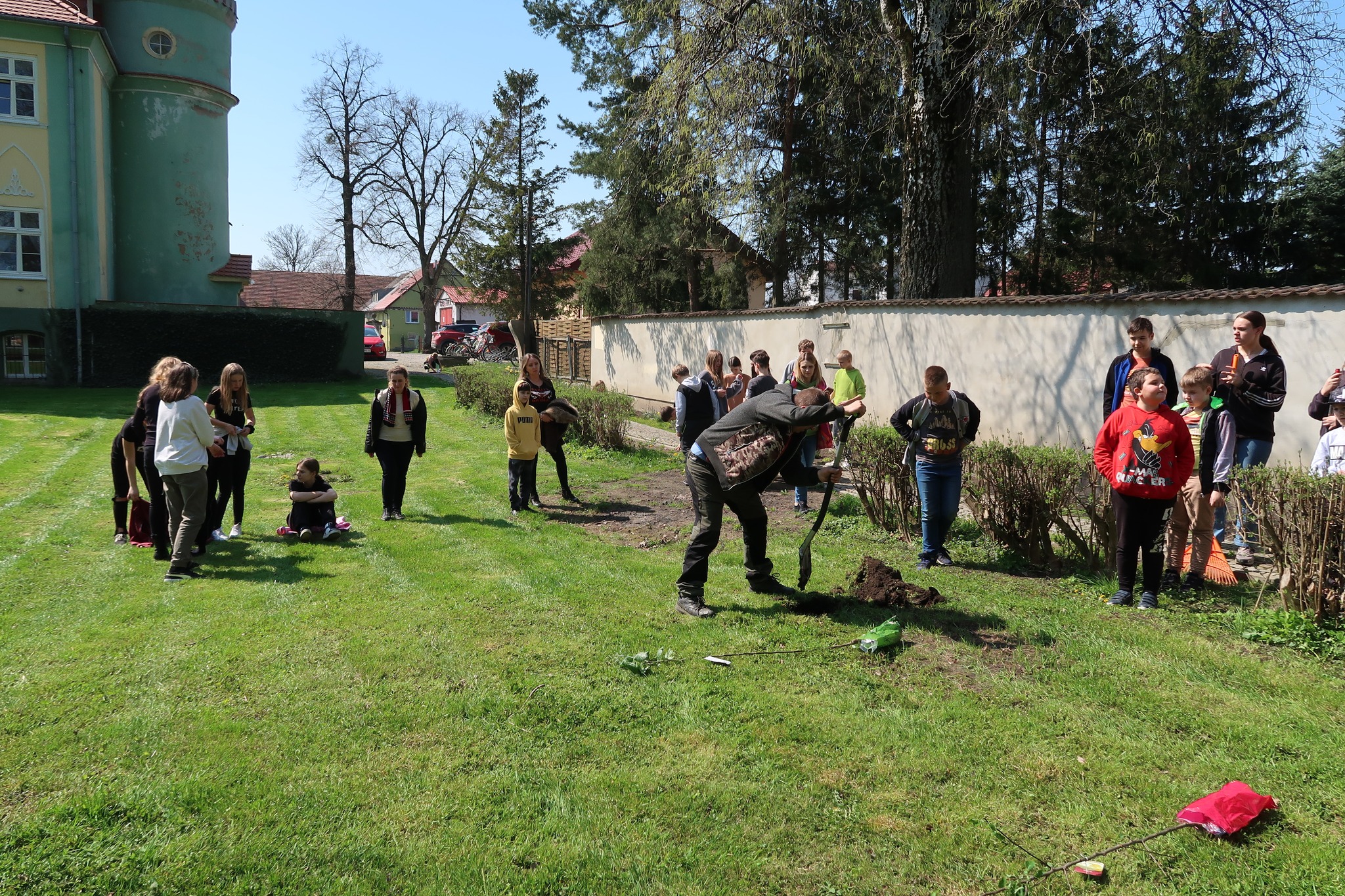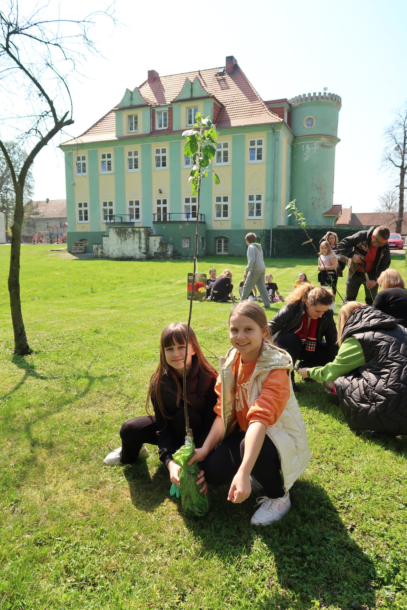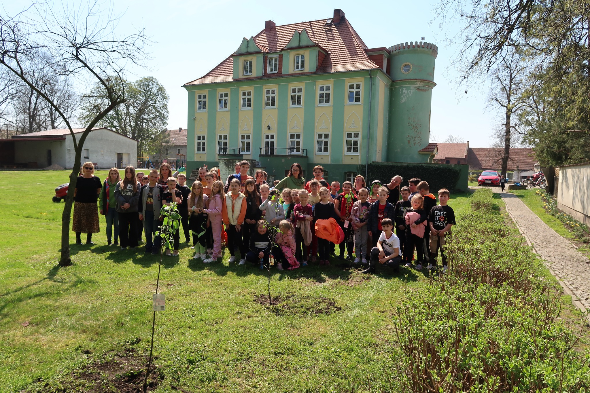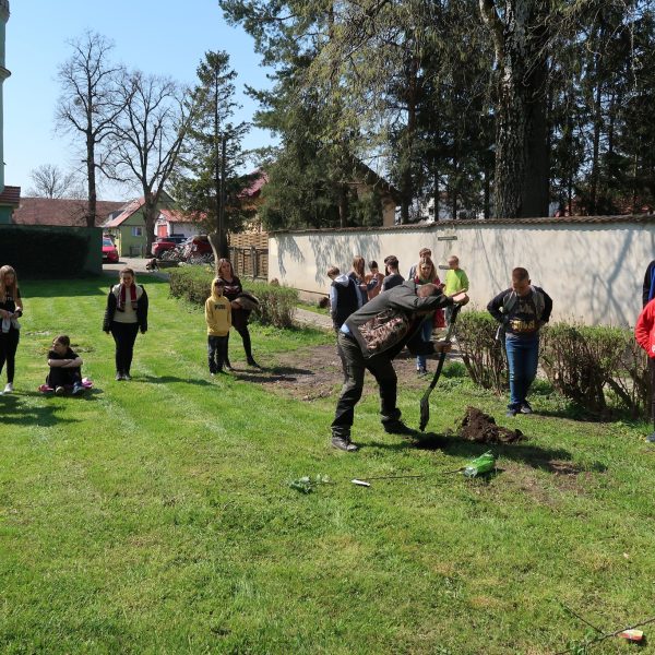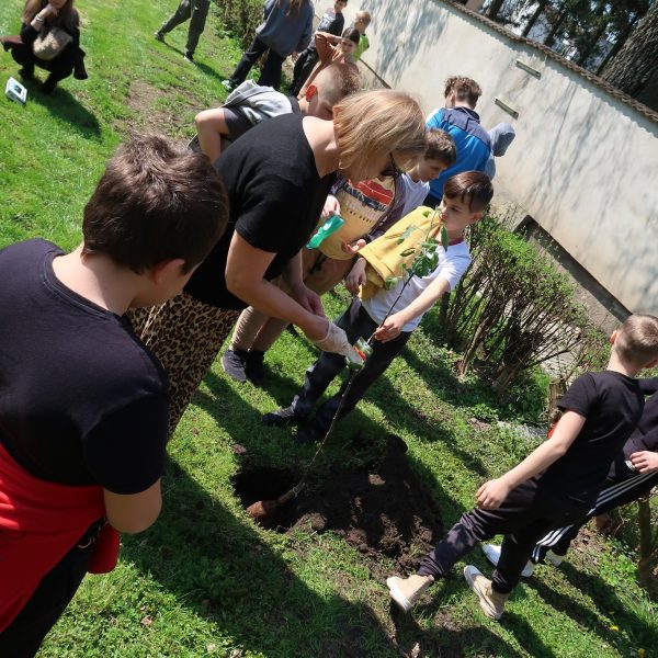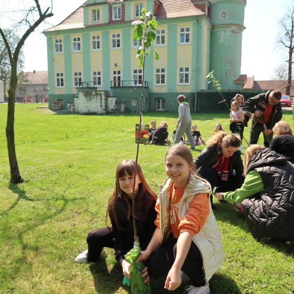 Na koniec – z inicjatywy Pani dyrektor Barbary Sasak- posadziliśmy trzy drzewka jabłoni. Będziemy o nie dbać tak, aby można było w niedalekiej przyszłości częstować się pysznymi owocami 🙂