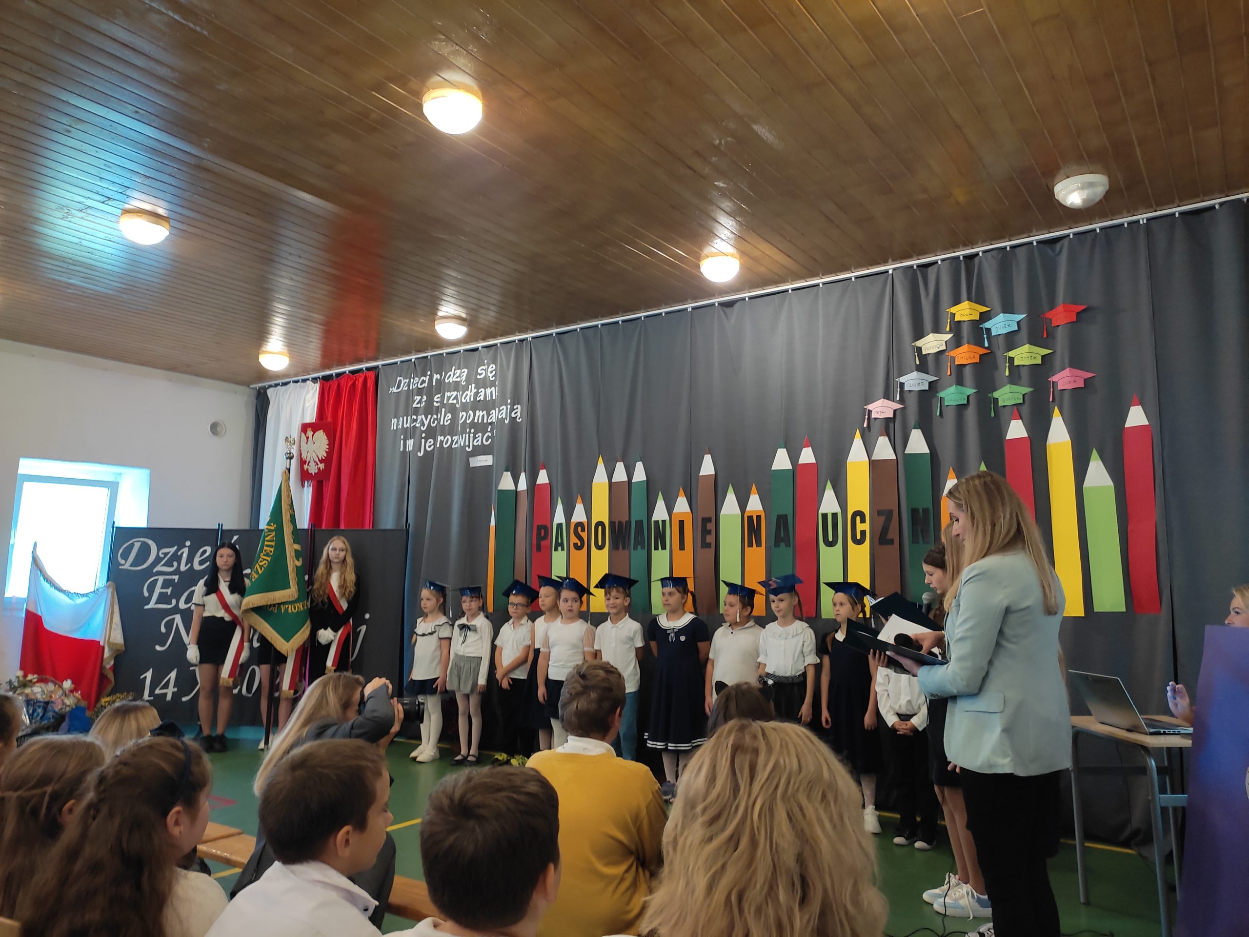 Tym razem piątek trzynastego nie był pechowy a wyjątkowy. W tym dniu odbyło się pasowanie naszych pierwszoklasistów na uczniów. Pierwszaki  śpiewająco zdały wszystkie testy, złożyły przysięgę i przez Pana Dyrektor Kamila Cioma, w obecności wychowawczyni Pani Agnieszki Zając i nas wszystkich obecnych zostały pasowane na ucznia. Nie zabrakło również wielu niespodzianek. Pan Wójt Jan Żukowski wręczył im specjalną nagrodę. Pierwszoklasiści otrzymali mnóstwo prezentów od wszystkich zebranych gości, rodziców, jak również starszych kolegów i koleżanek.