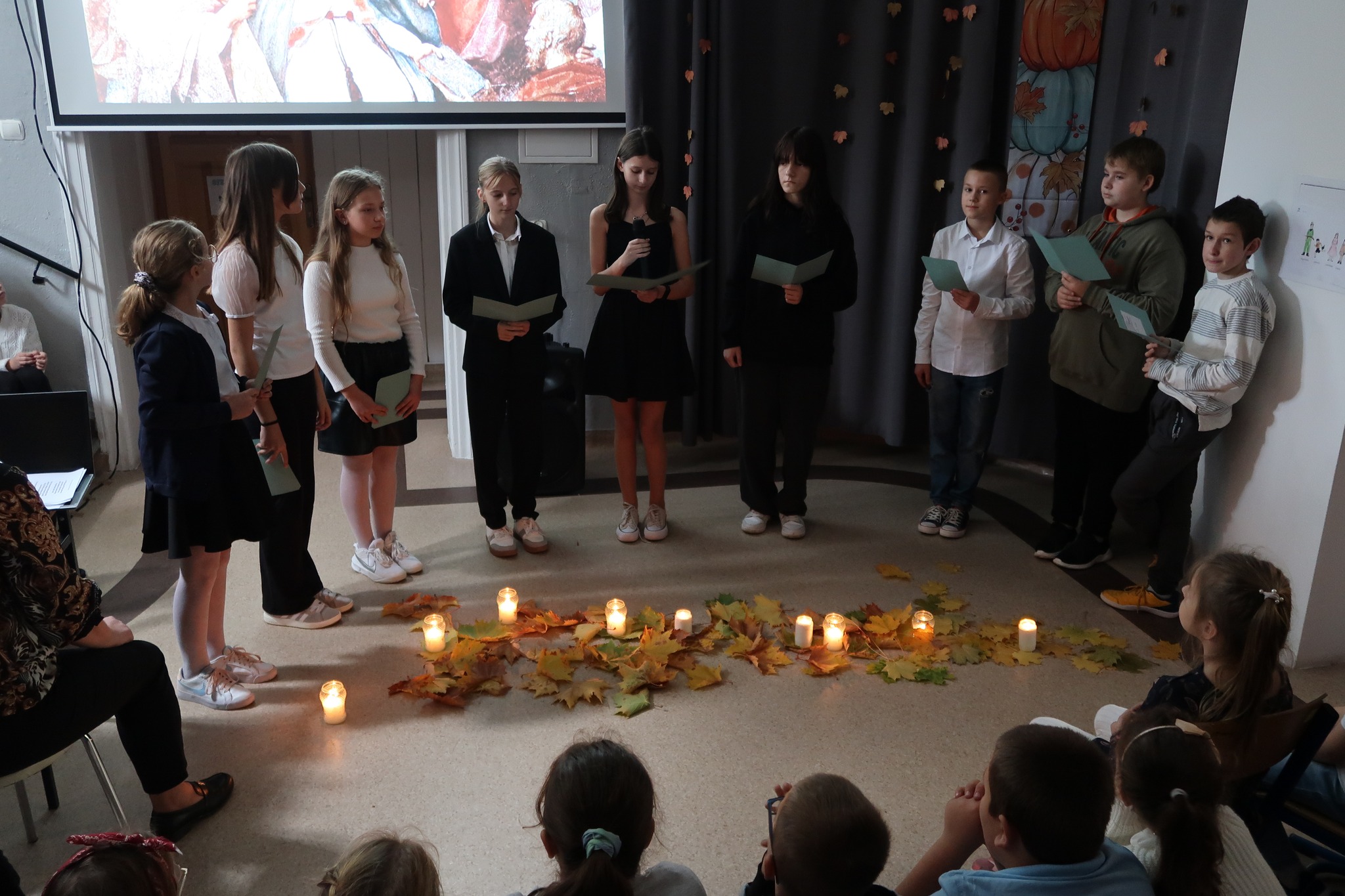 30.10 uczniowie kl. IV-VII pod kierunkiem P. Agnieszki Dygi zaprezentowali montaż słowny nawiązujący do tradycji i zwyczajów obchodzonych dawniej i dziś przy okazji Dnia Wszystkich Świętych oraz Dnia Zadusznych. Bardzo dziękujemy 🙂
