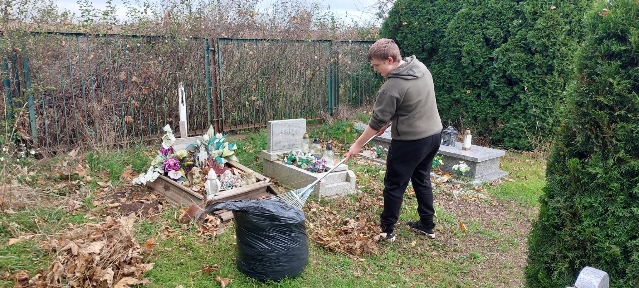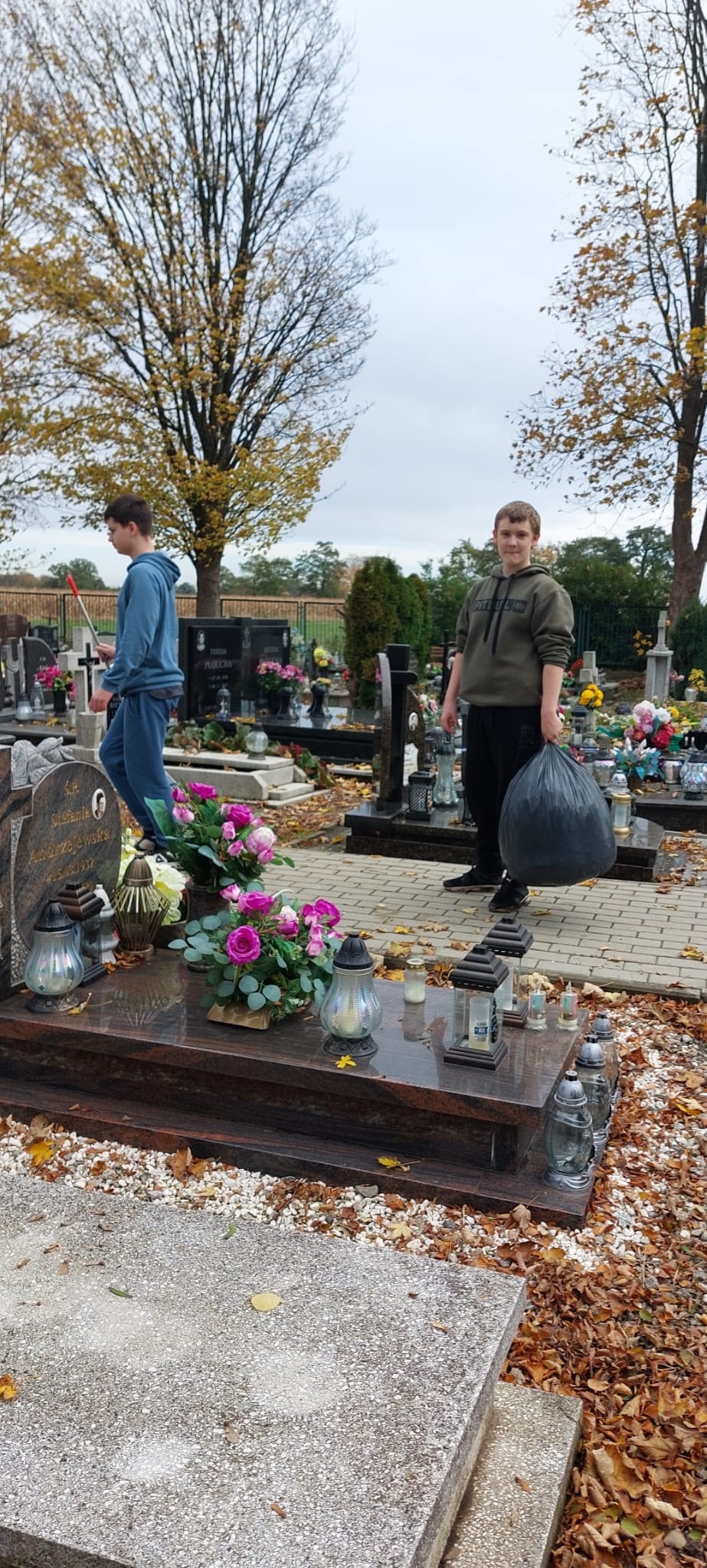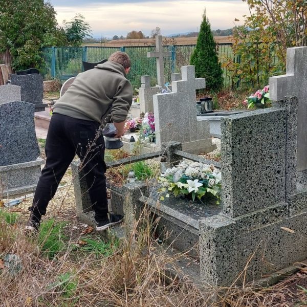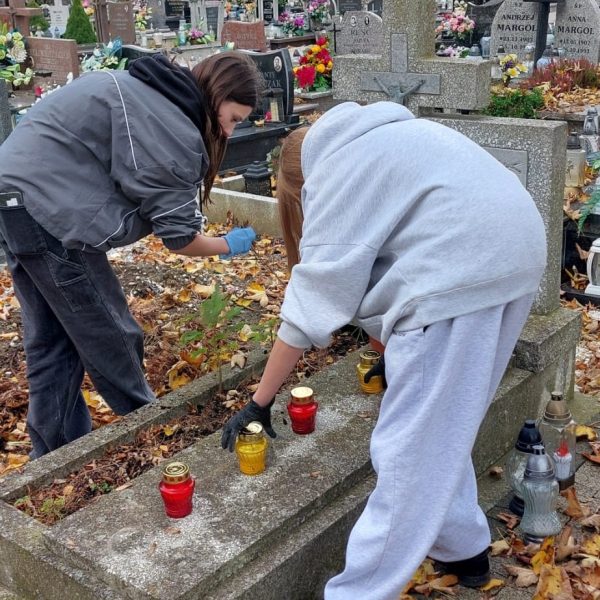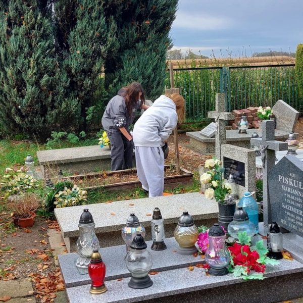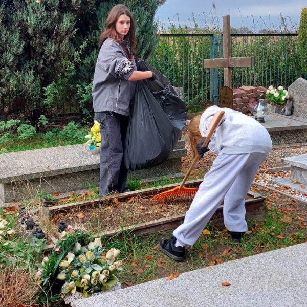 Dziś po lekcjach uczniowie klas 7 i 8 wraz z opiekunem Szkolnego Wolontariatu p.Moniką Maziarz i i opiekunem Samorządu Szkolnego p. Agnieszką Banaszak- Ożóg poszli na nasz pobliski cmentarz, aby jak co roku uporządkować groby, których od dawna nikt nie odwiedzał. Dzięki ich determinacji i pracy miejsca te odzyskały godność i blask.