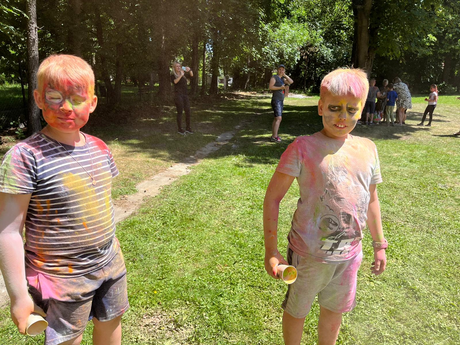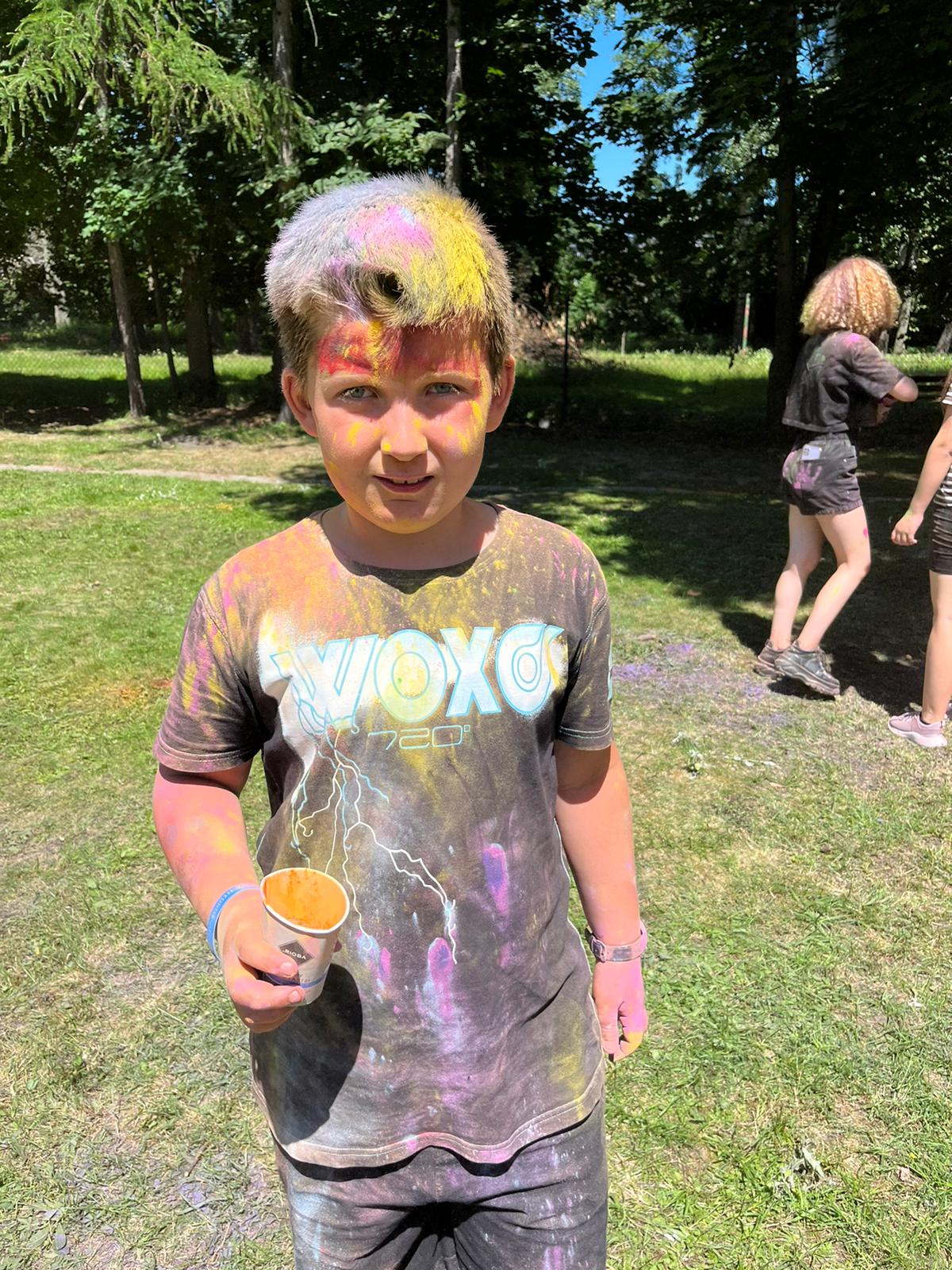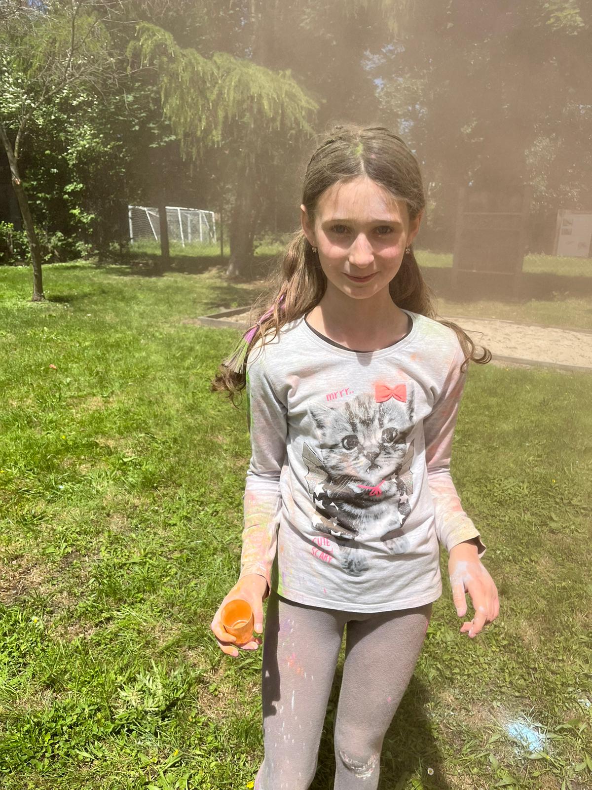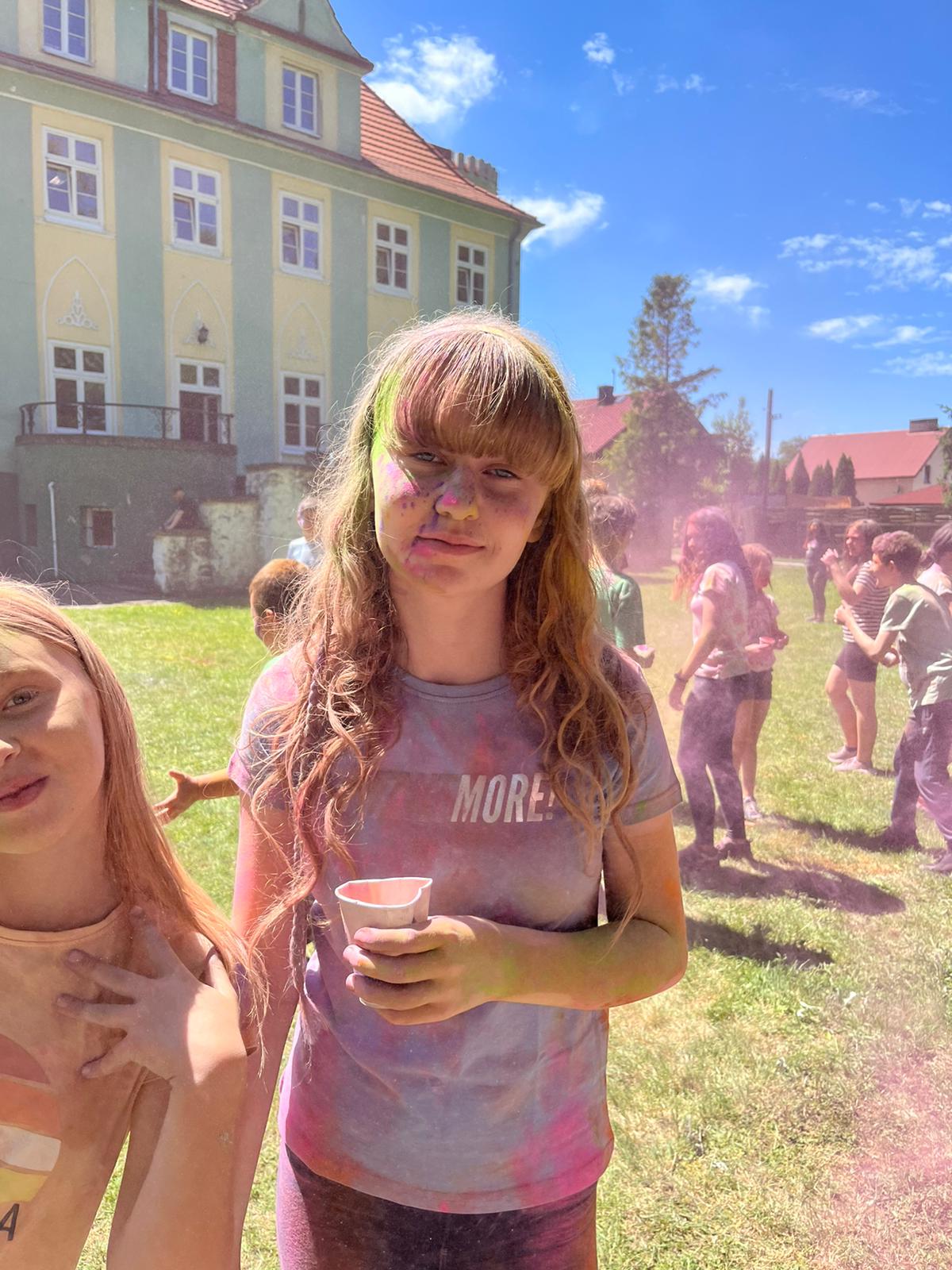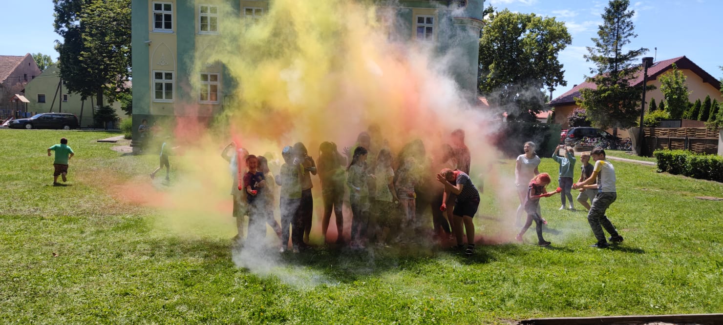 Oto finał naszego święta i najbardziej tajemnicza niespodzianka przygotowana dla dzieci-,,bitwa” na kolory Jak widać, sprawiła dzieciom niesamowitą frajdę