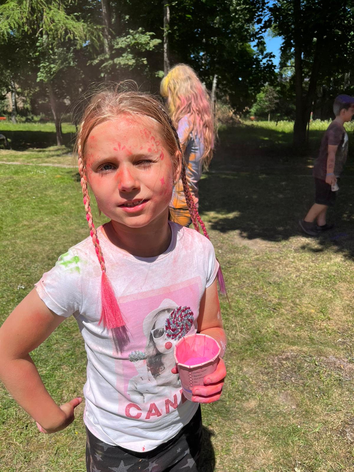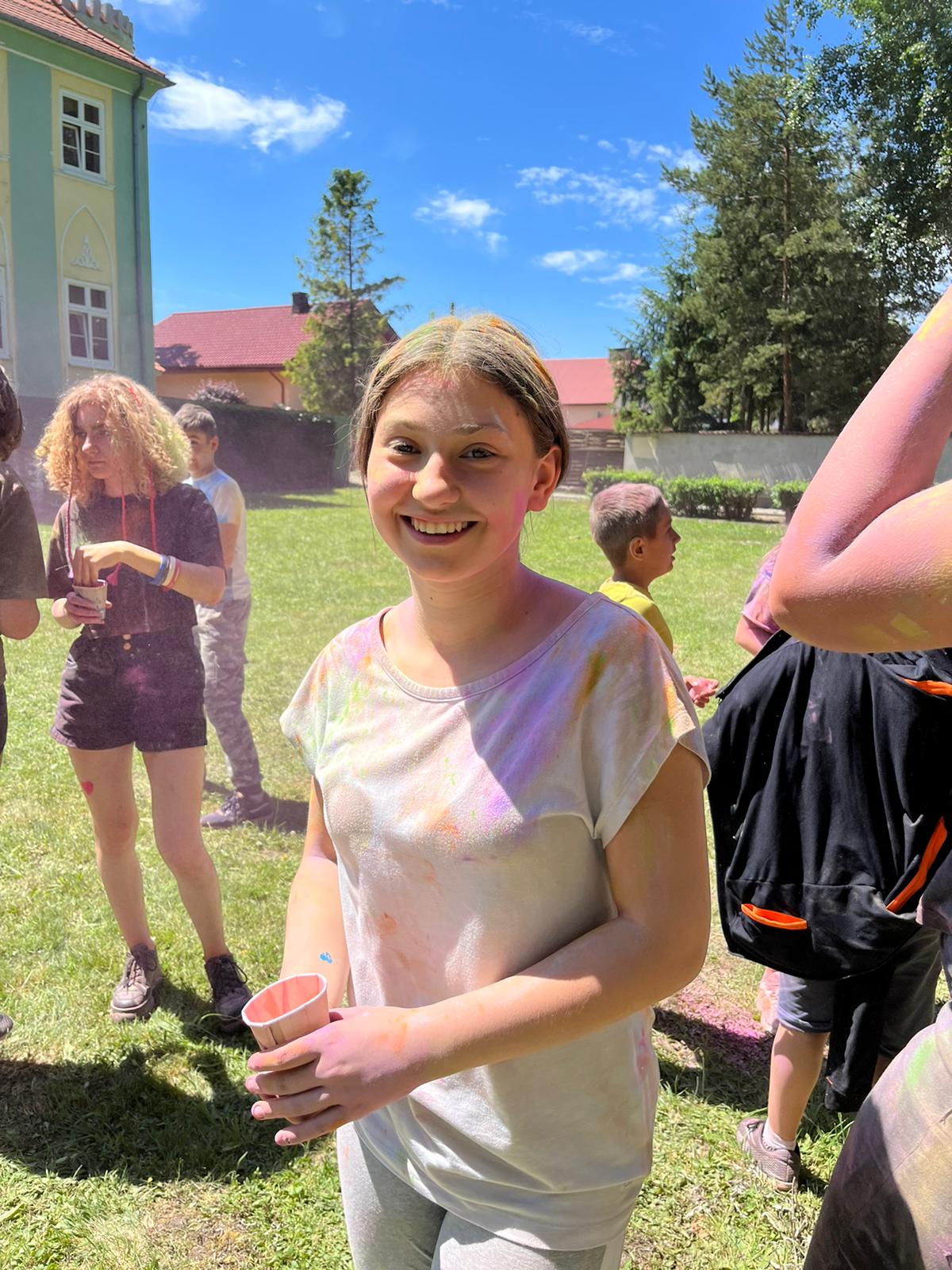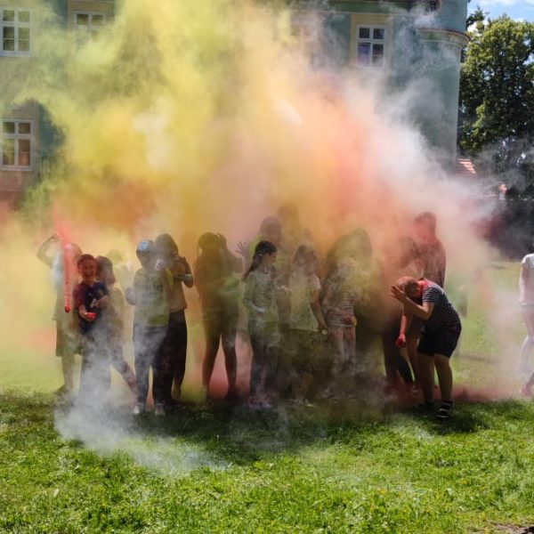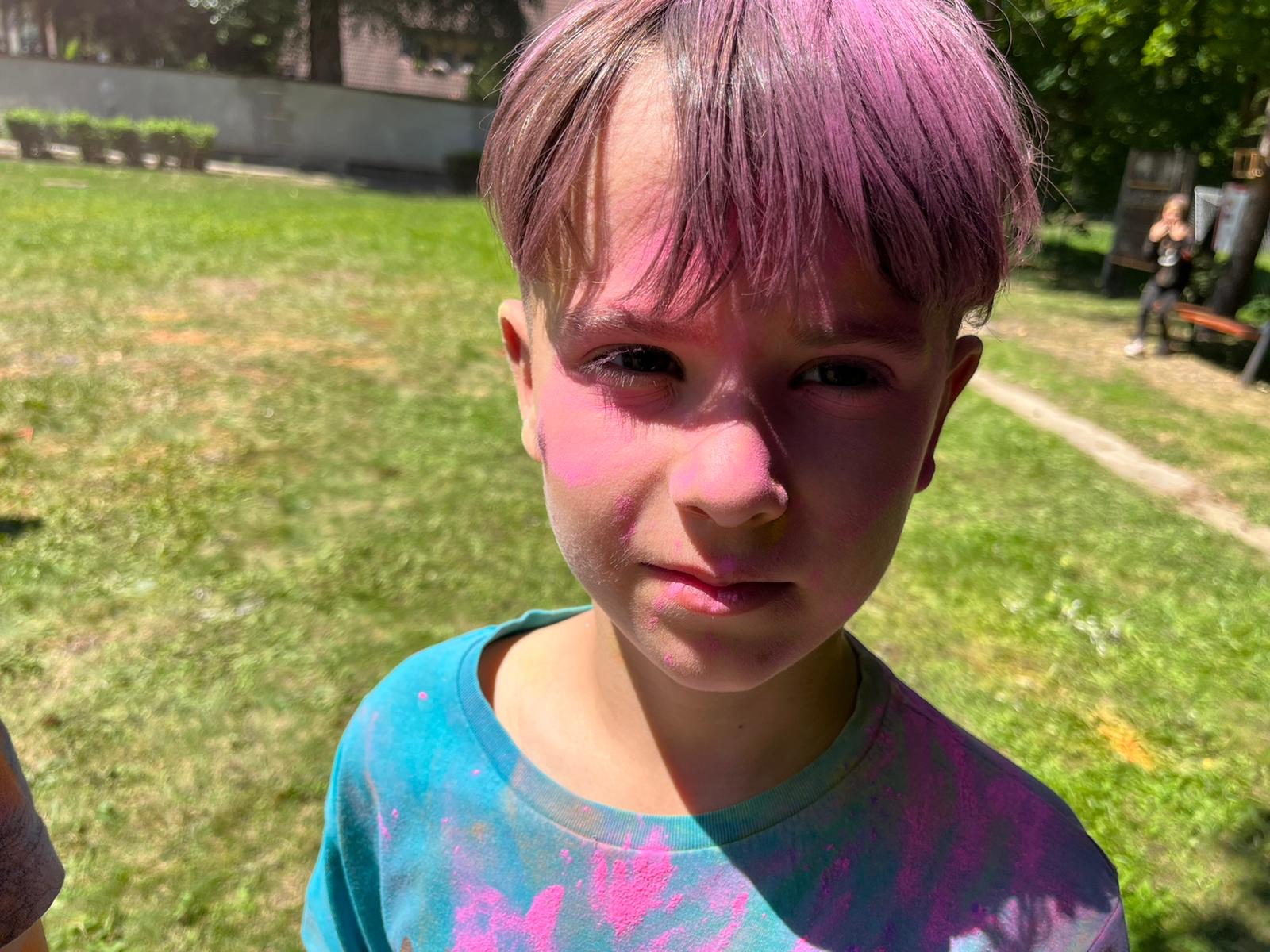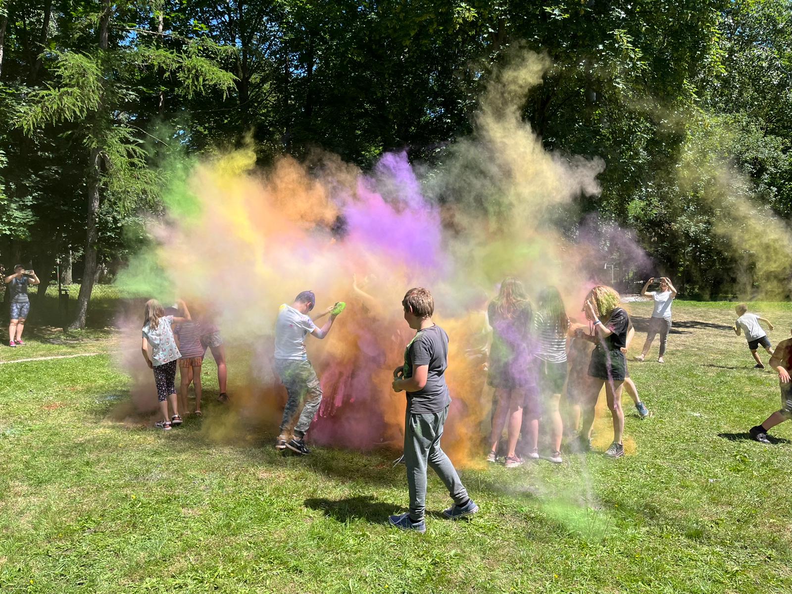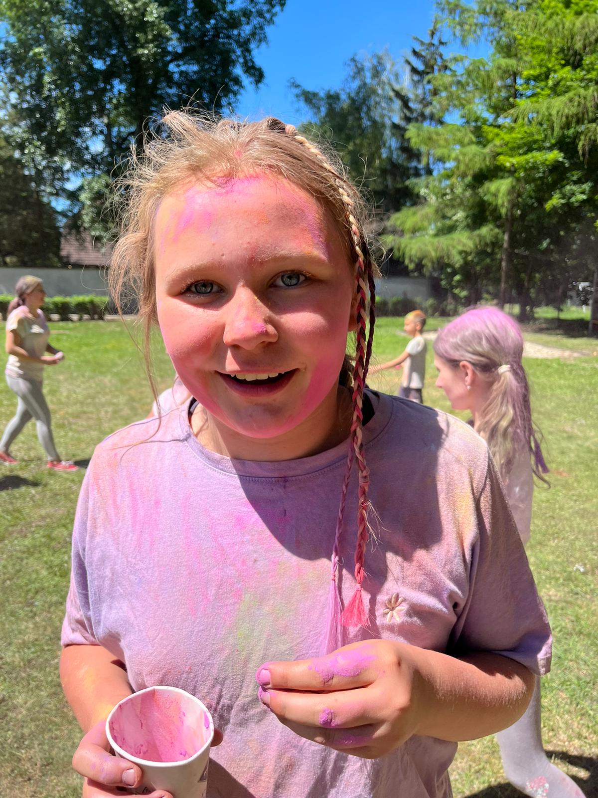 Oto finał naszego święta i najbardziej tajemnicza niespodzianka przygotowana dla dzieci-,,bitwa” na kolory Jak widać, sprawiła dzieciom niesamowitą frajdę
