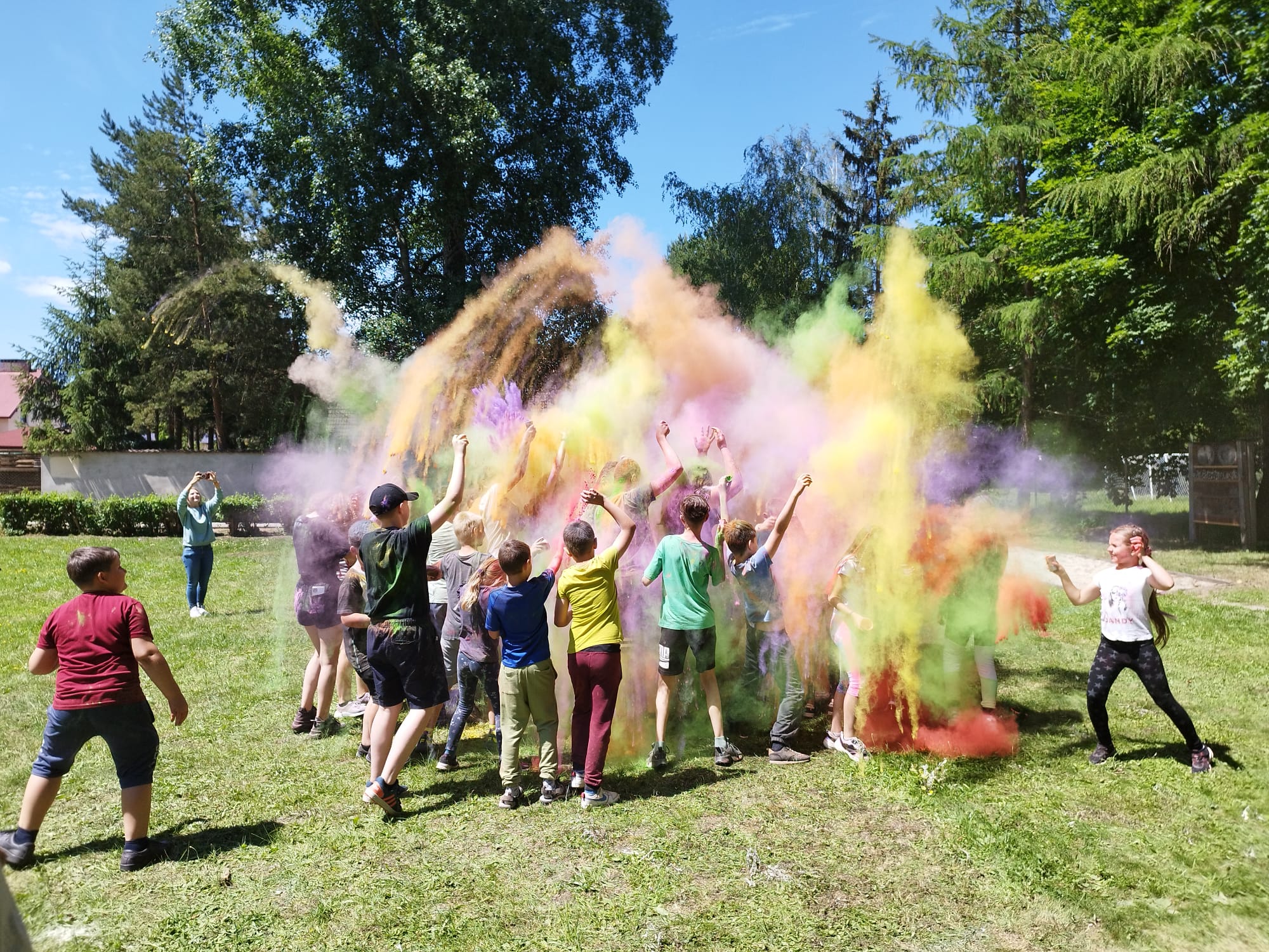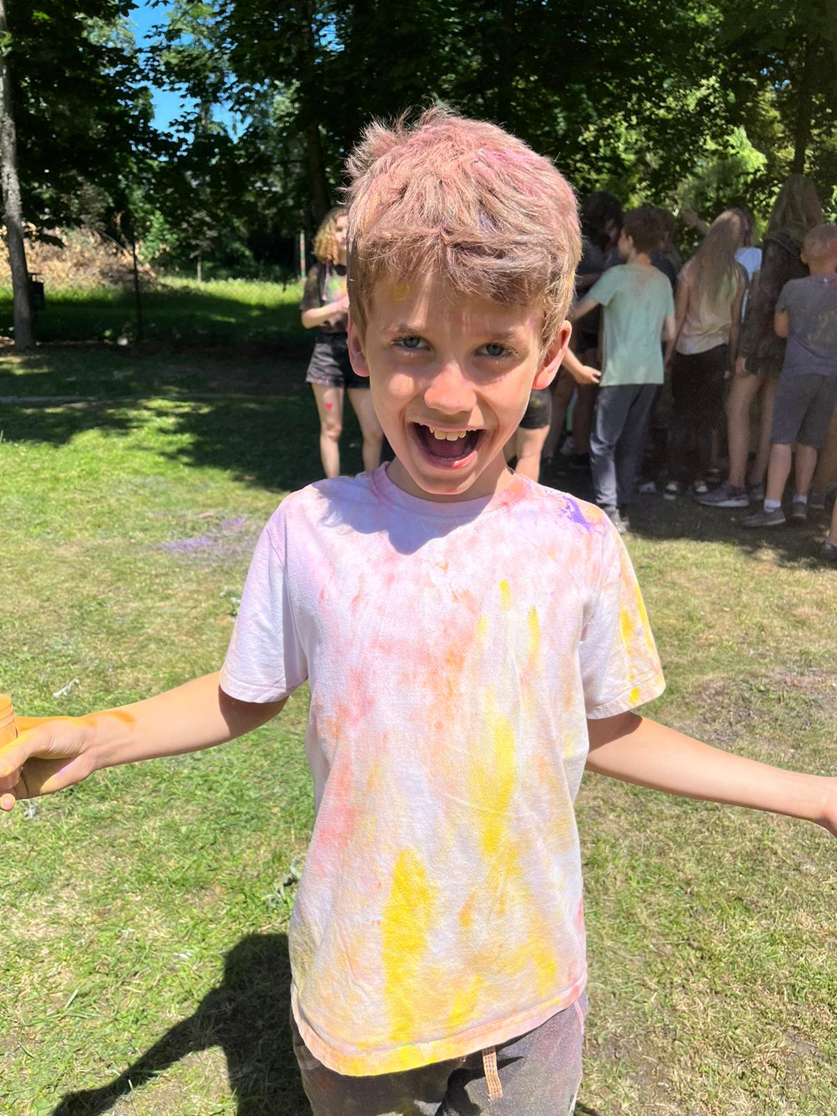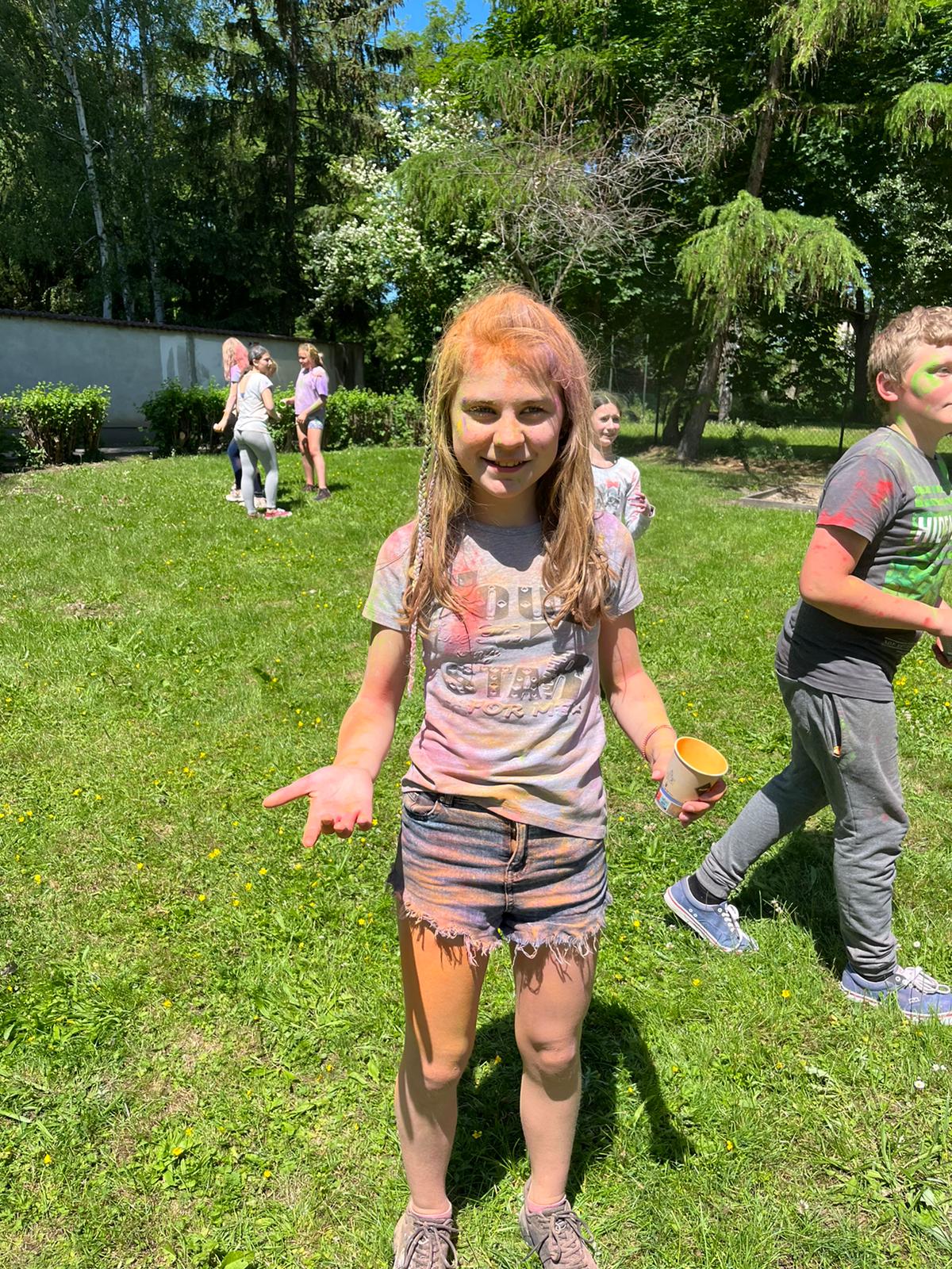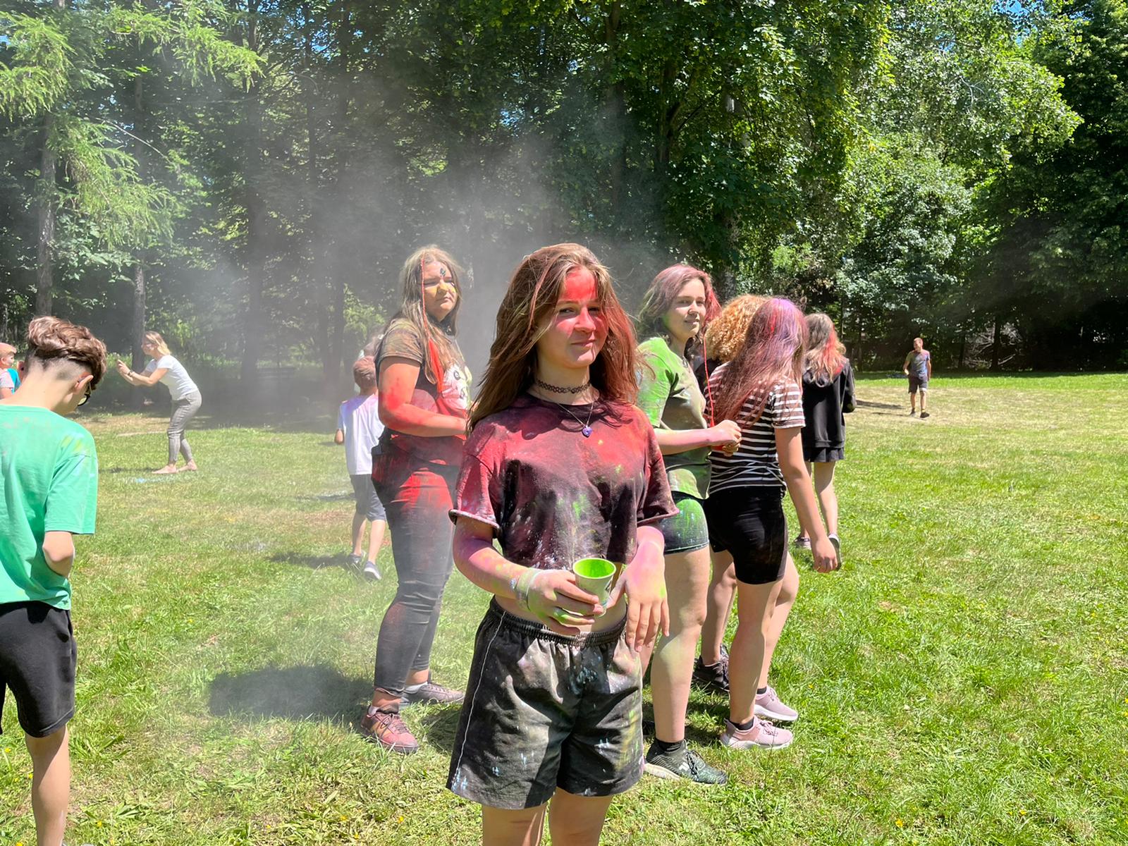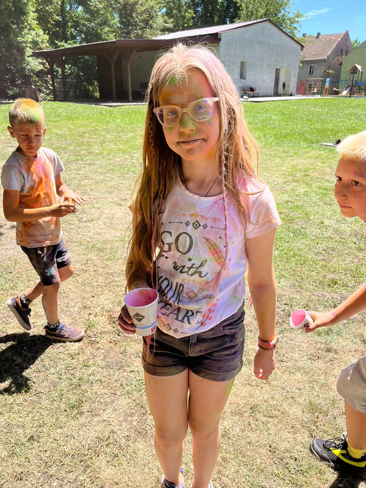 Oto finał naszego święta i najbardziej tajemnicza niespodzianka przygotowana dla dzieci-,,bitwa” na kolory Jak widać, sprawiła dzieciom niesamowitą frajdę