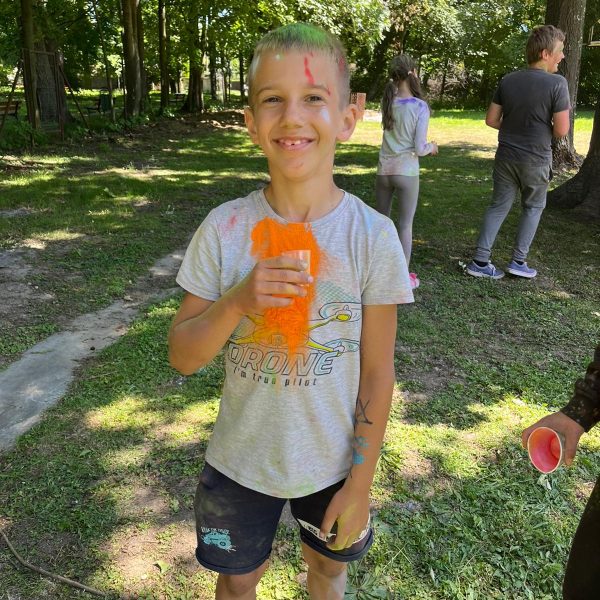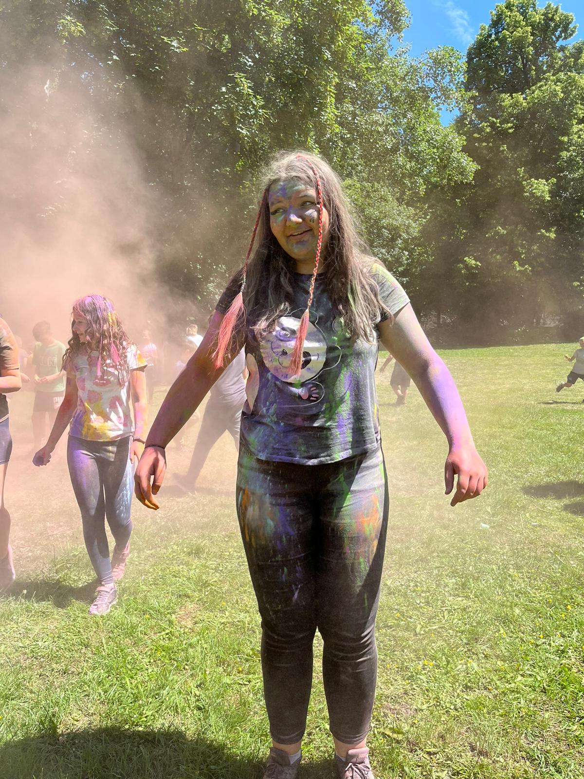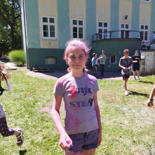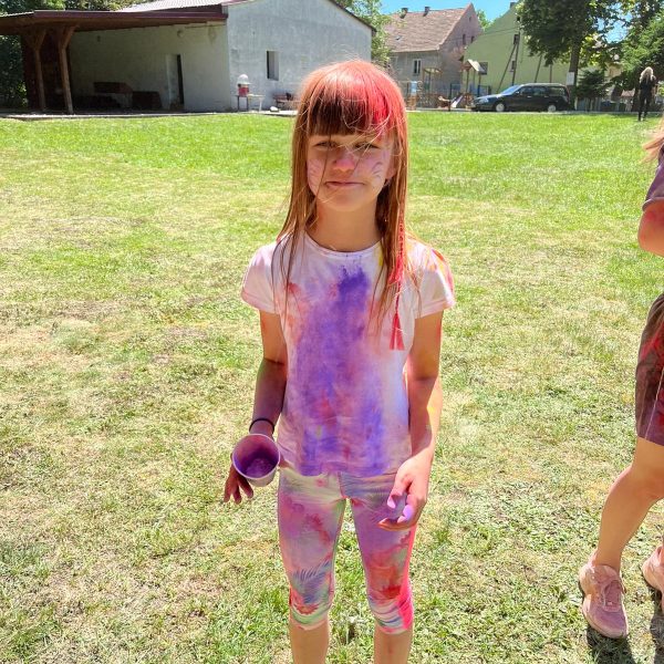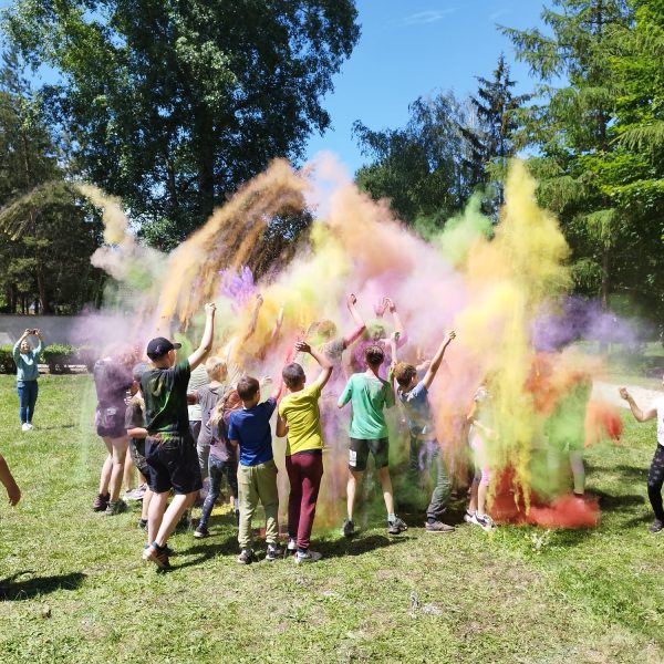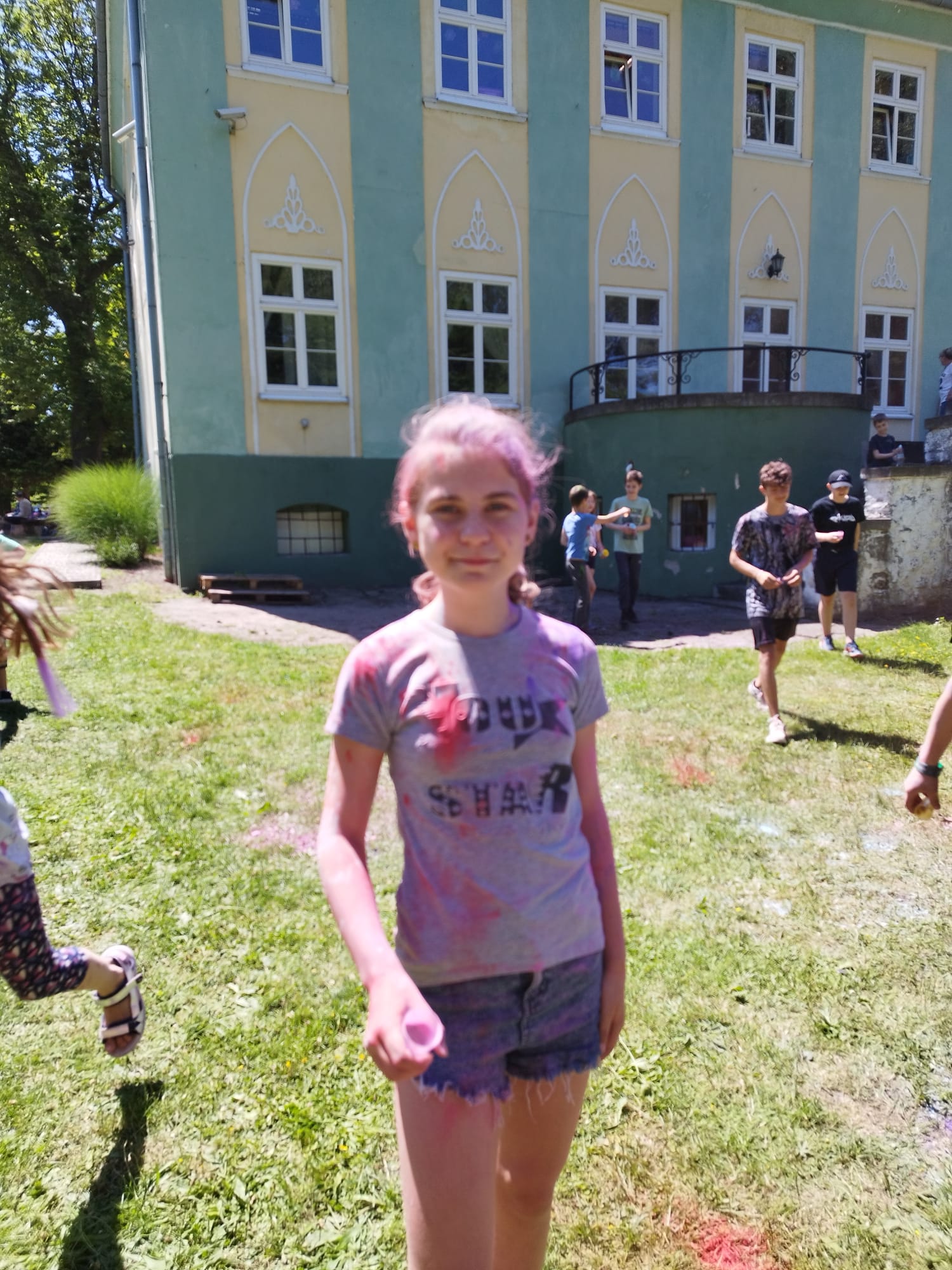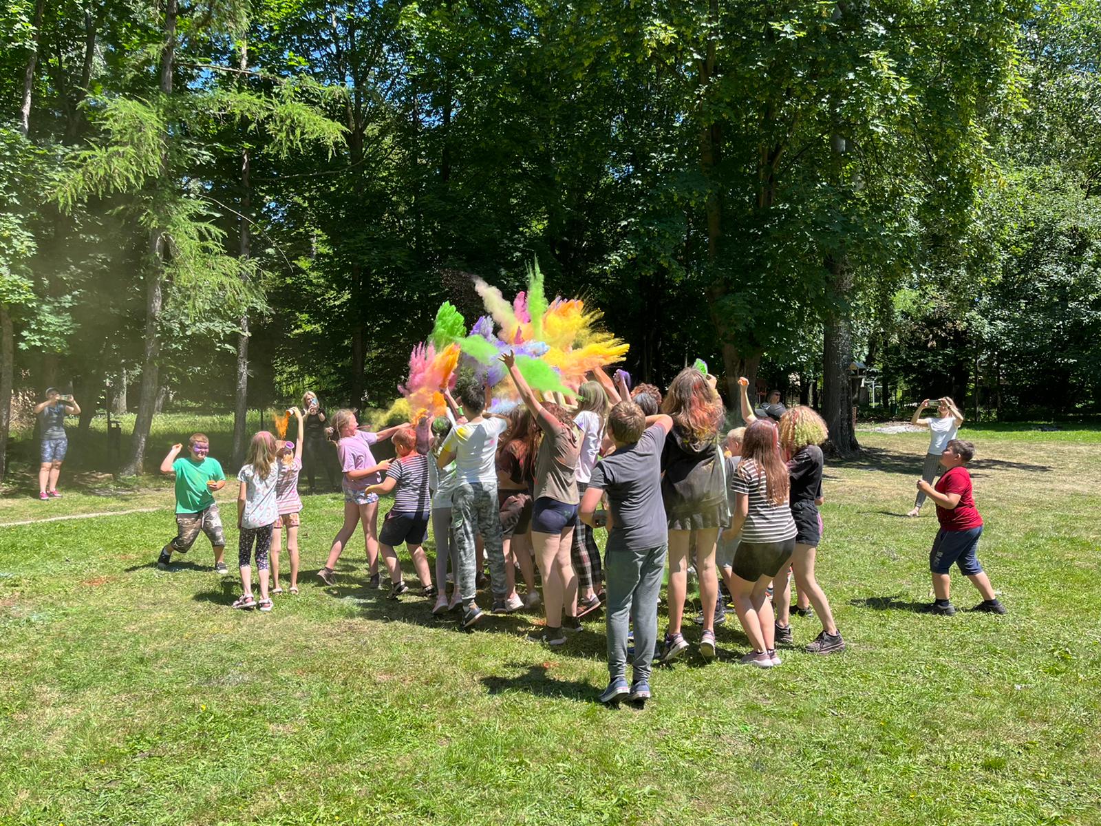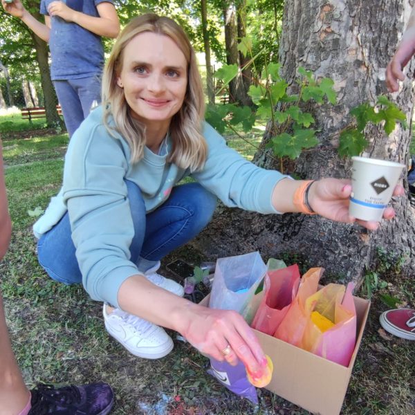 Oto finał naszego święta i najbardziej tajemnicza niespodzianka przygotowana dla dzieci-,,bitwa” na kolory Jak widać, sprawiła dzieciom niesamowitą frajdę