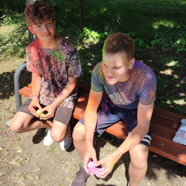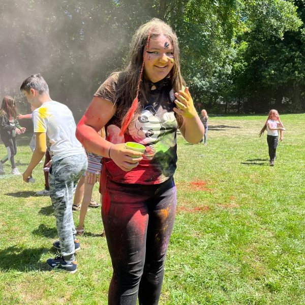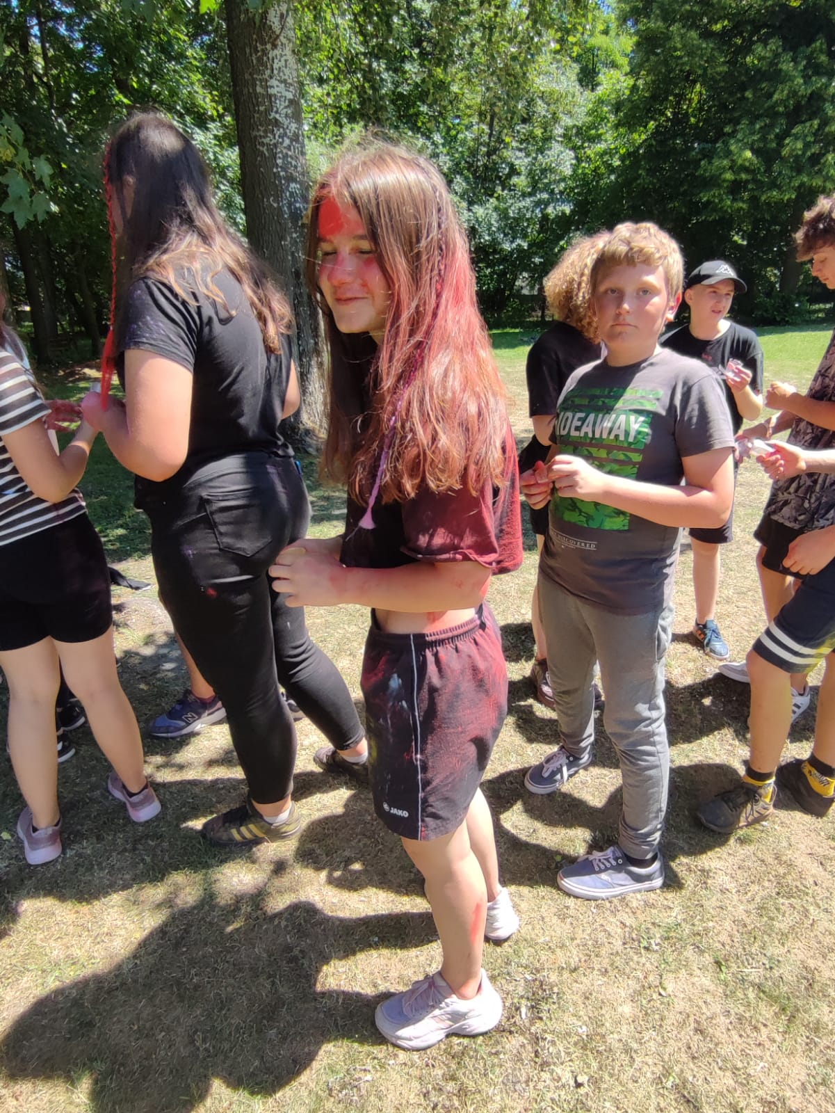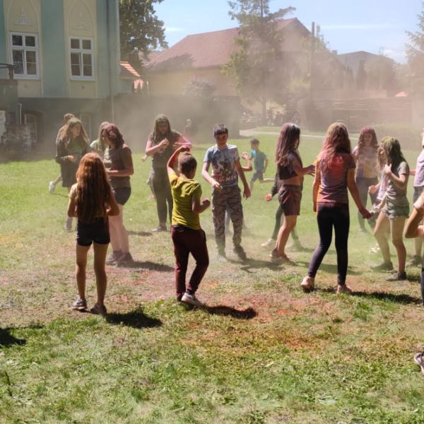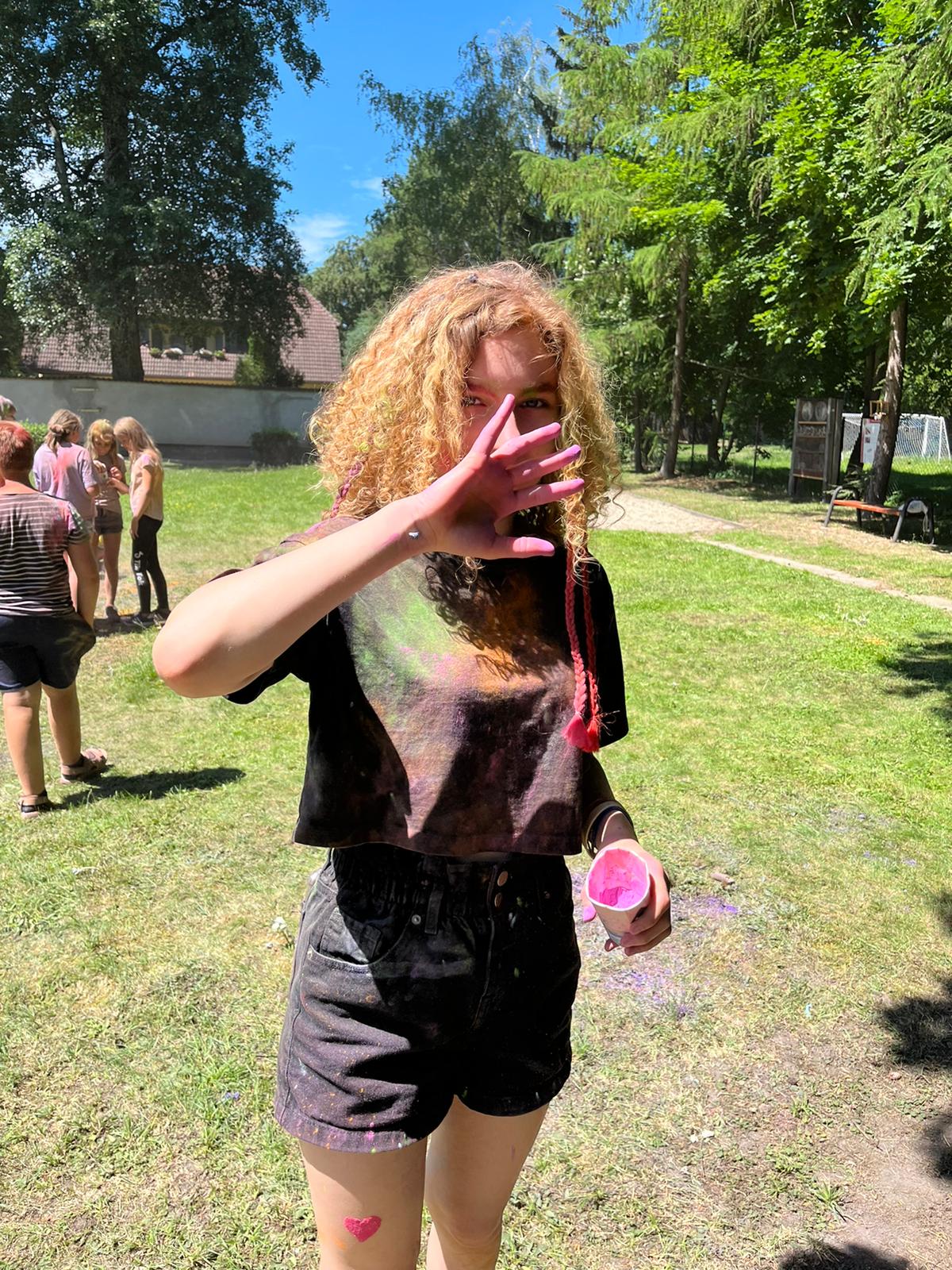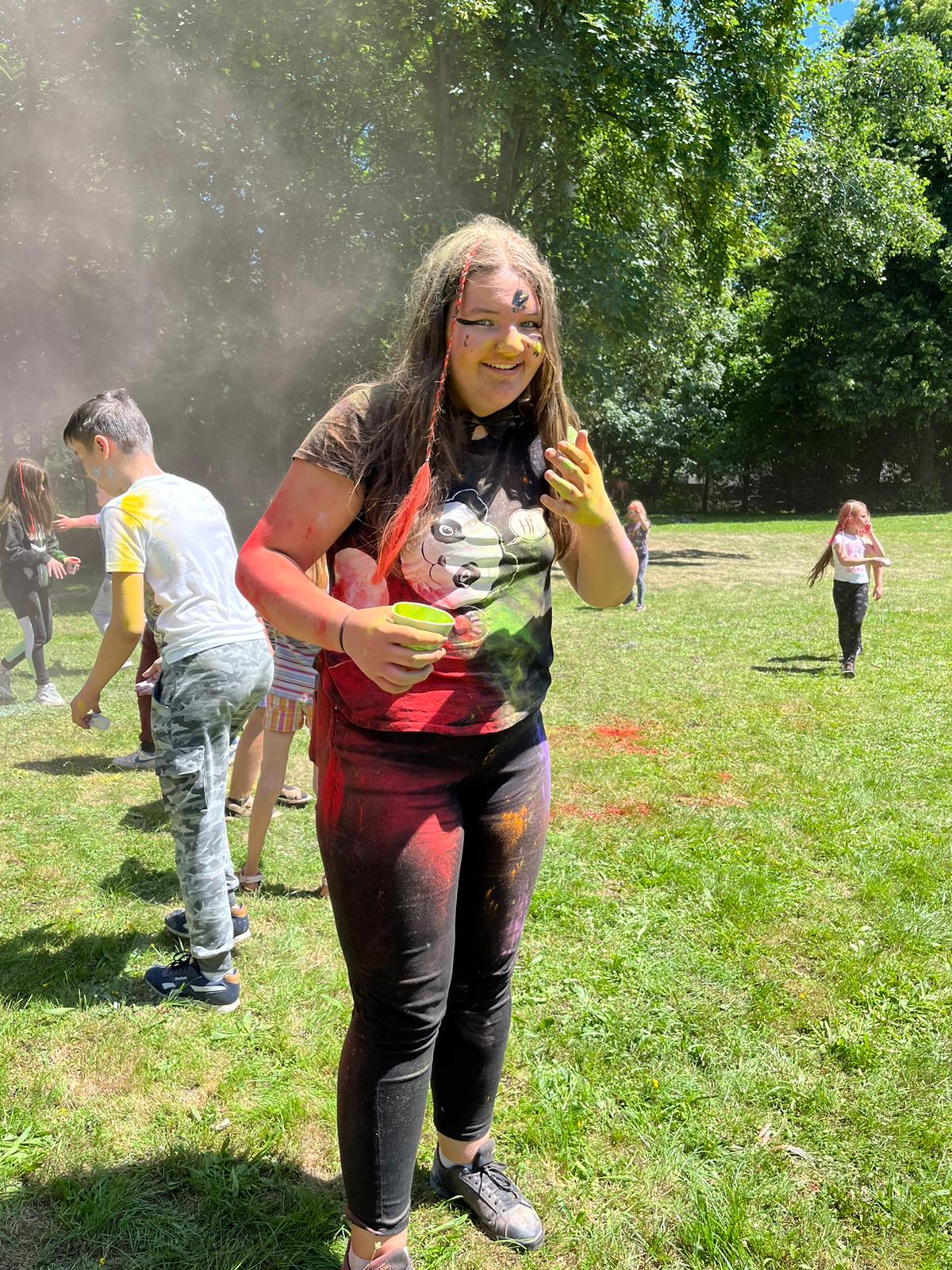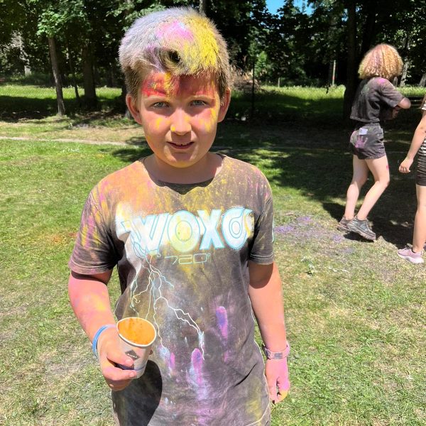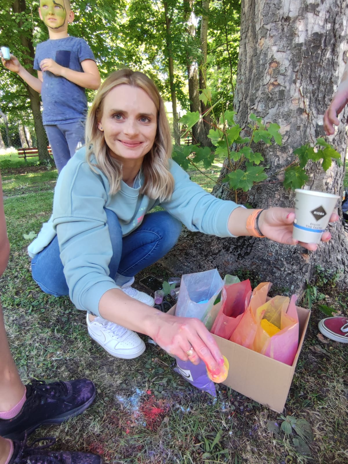 Oto finał naszego święta i najbardziej tajemnicza niespodzianka przygotowana dla dzieci-,,bitwa” na kolory Jak widać, sprawiła dzieciom niesamowitą frajdę