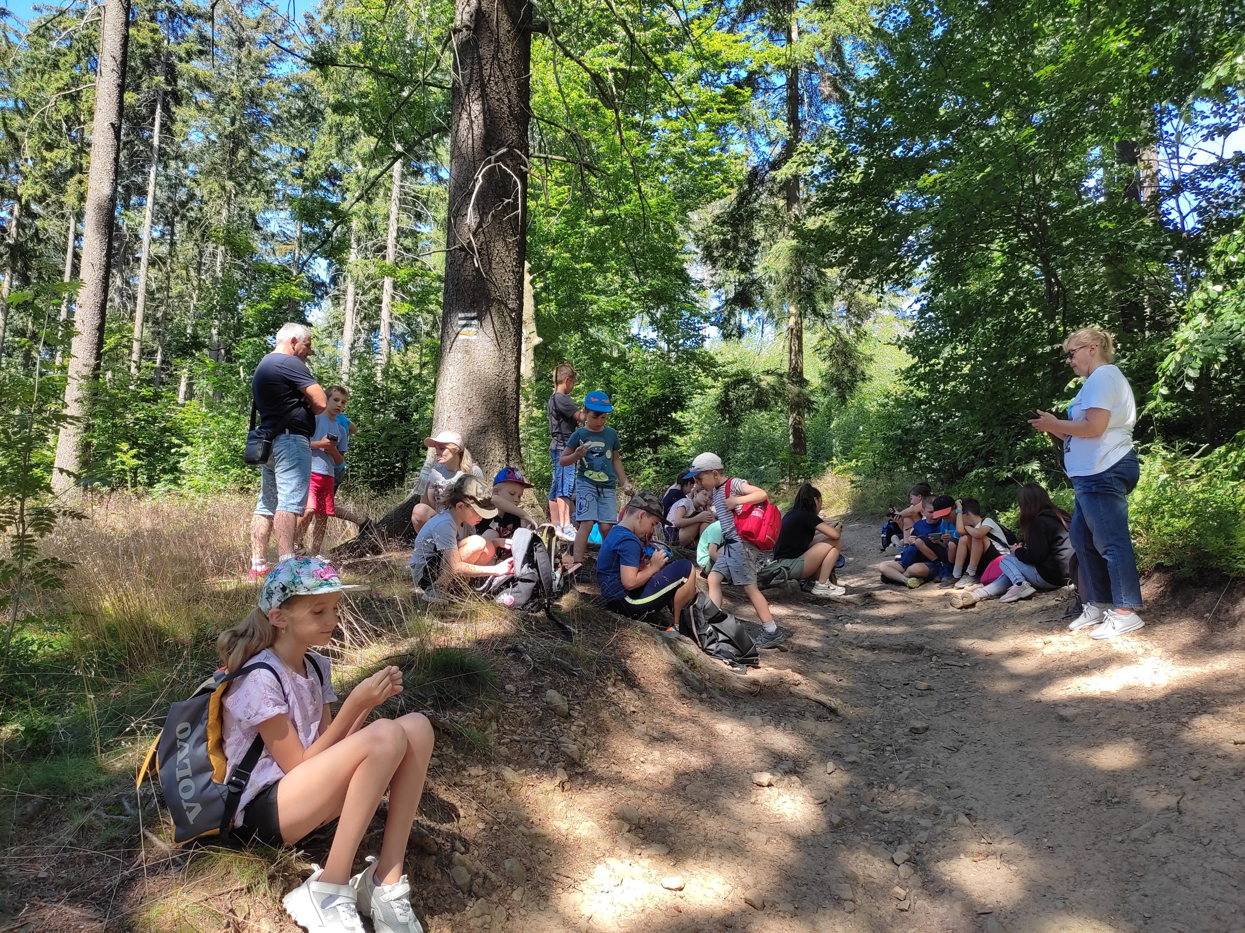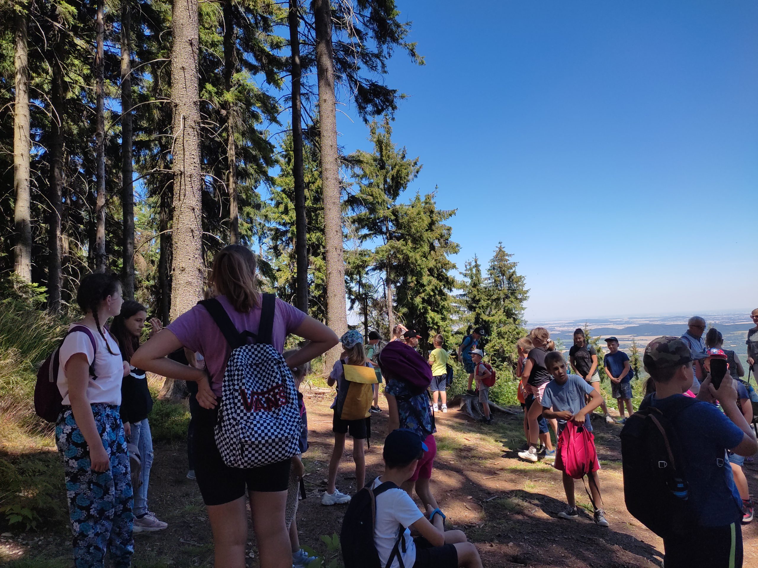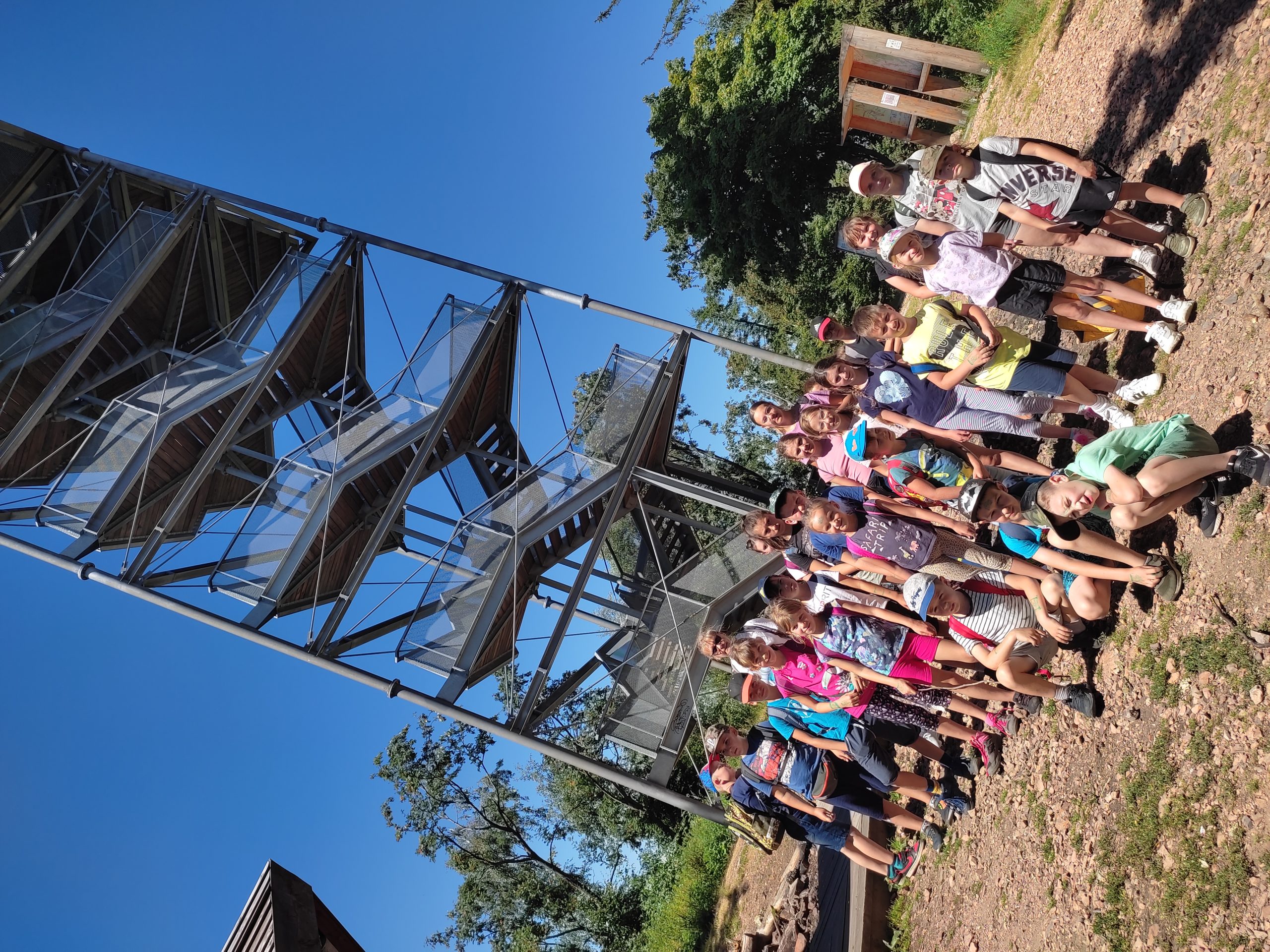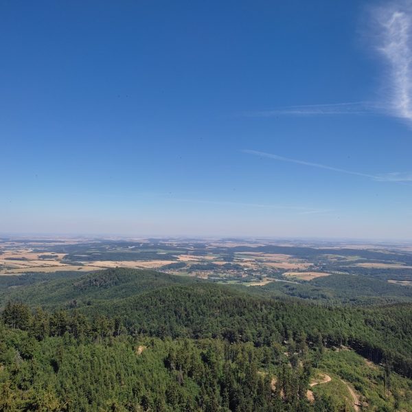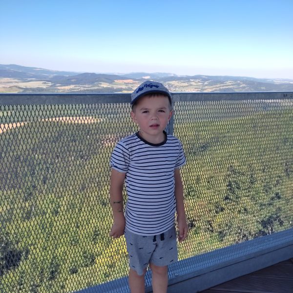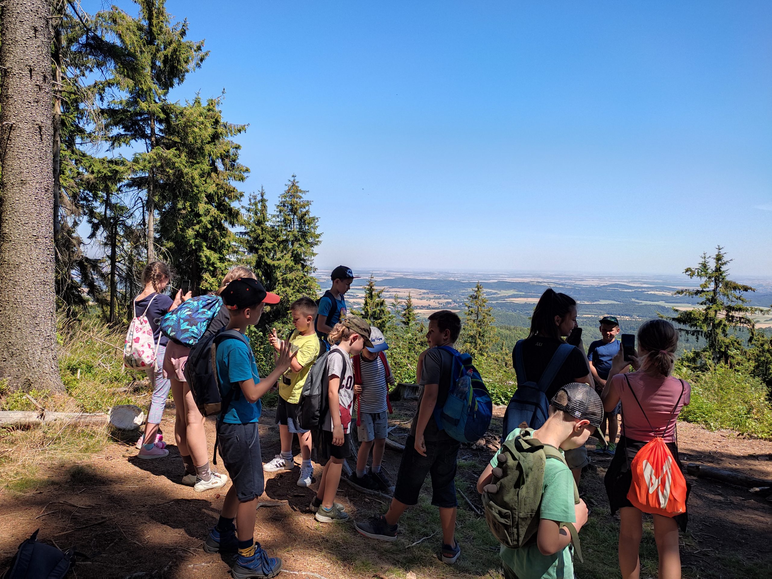 25.07.22r. rozpoczęliśmy nasze półkolonie zdobyciem szczyty Trójgarb (778 m n.p.m.) w Górach Wałbrzyskich. Szliśmy najłatwiejszym żółtym szlakiem z Lubomina, który wiedzie bardzo malowniczą trasą. Na szczycie czekała nas piękna wieża widokowa. Wieża widokowa na Trójgarbie została oddana do użytku pod koniec 2018 roku. Obiekt powstał w ramach programu „Ekomuzeum wokół Trójgarbu”. Budowla ma 27 metrów wysokości i aż pięć tarasów widokowych zawieszonych na różnych wysokościach! Imponujące konstrukcja a widoki z góry cudowne 🙂 Będzie co wspominać po wakacjach 🙂