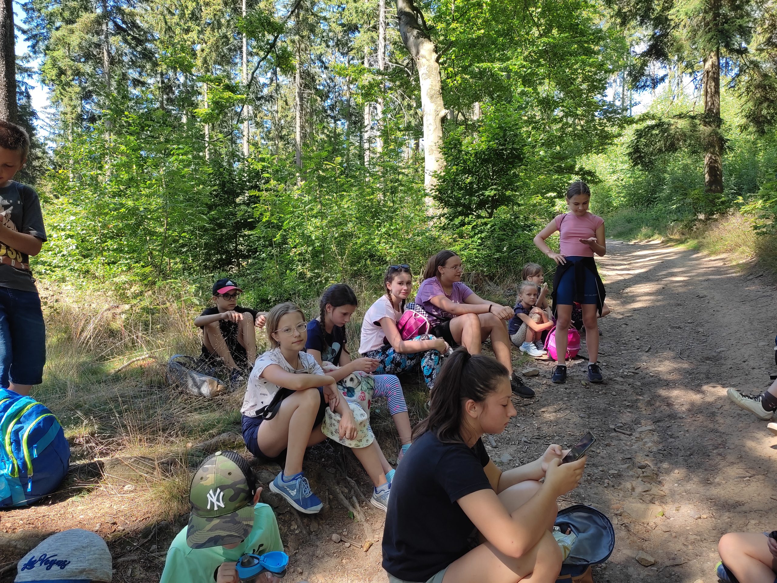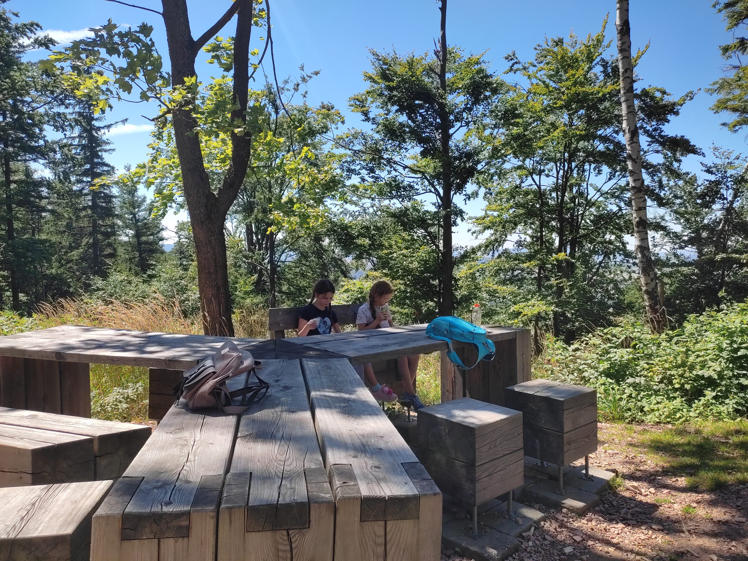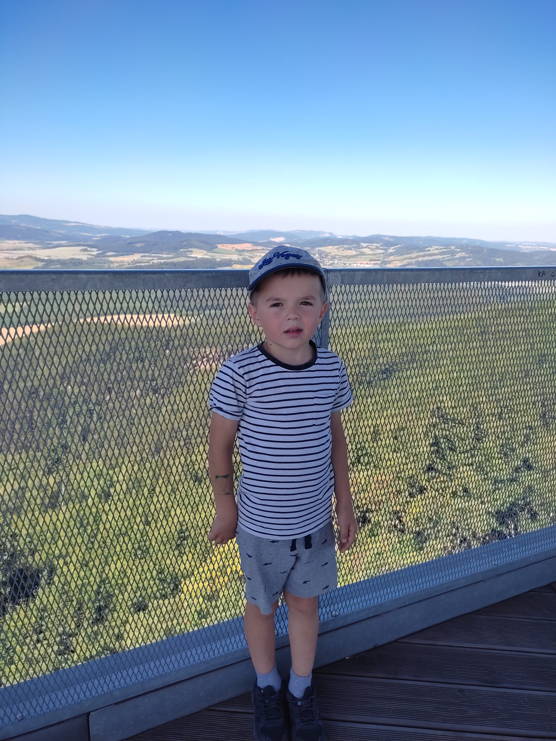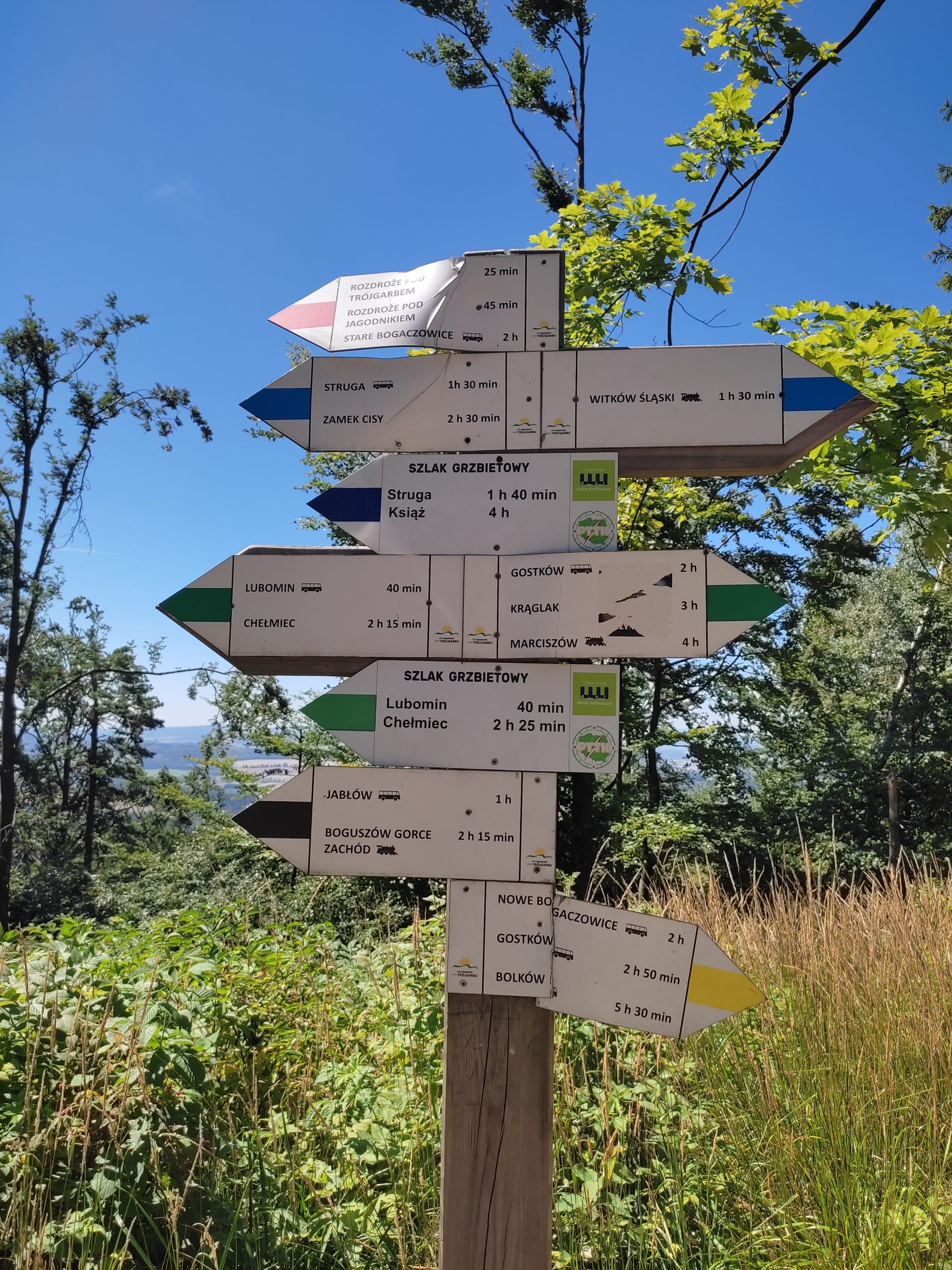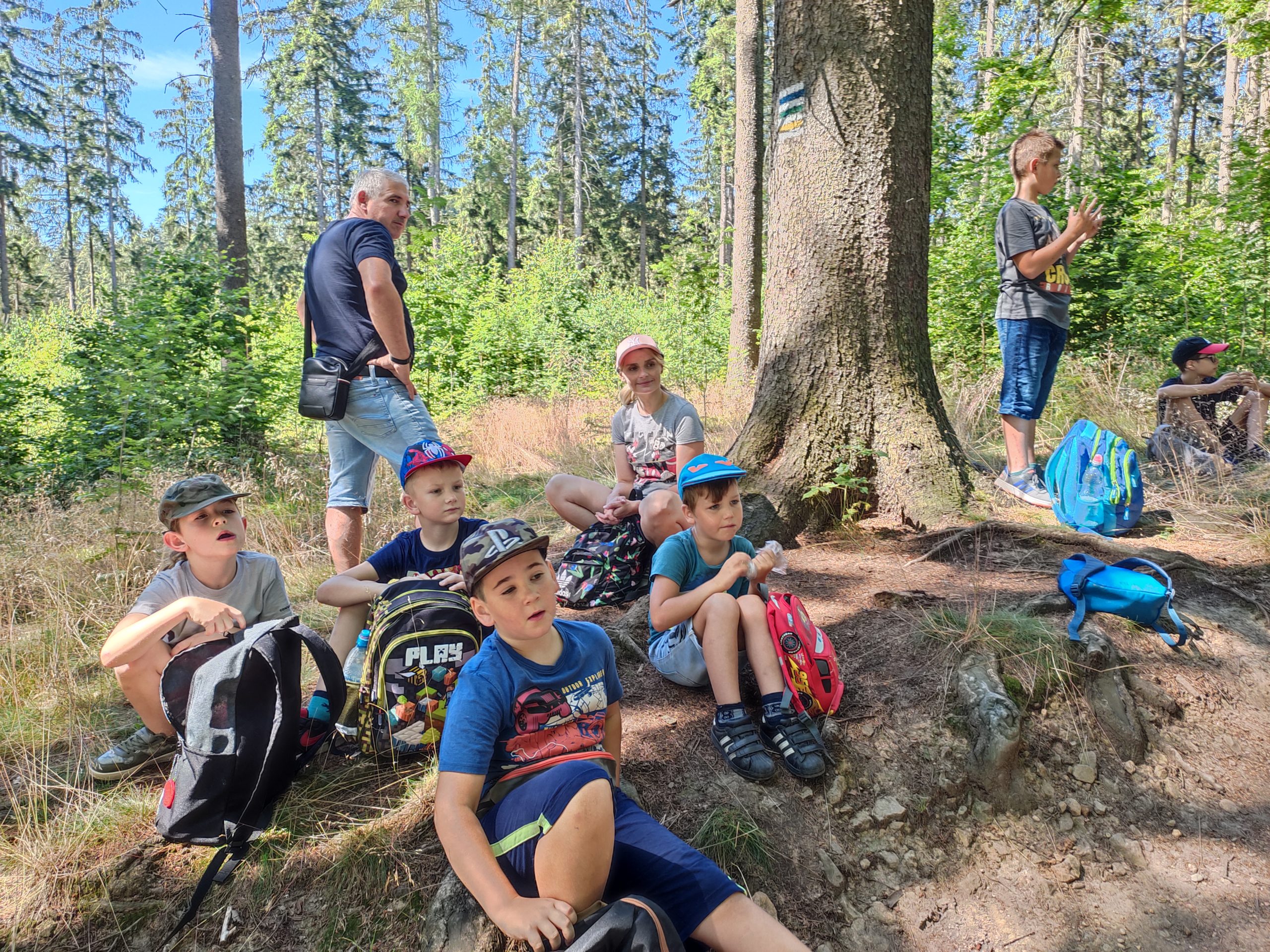 25.07.22r. rozpoczęliśmy nasze półkolonie zdobyciem szczyty Trójgarb (778 m n.p.m.) w Górach Wałbrzyskich. Szliśmy najłatwiejszym żółtym szlakiem z Lubomina, który wiedzie bardzo malowniczą trasą. Na szczycie czekała nas piękna wieża widokowa. Wieża widokowa na Trójgarbie została oddana do użytku pod koniec 2018 roku. Obiekt powstał w ramach programu „Ekomuzeum wokół Trójgarbu”. Budowla ma 27 metrów wysokości i aż pięć tarasów widokowych zawieszonych na różnych wysokościach! Imponujące konstrukcja a widoki z góry cudowne 🙂 Będzie co wspominać po wakacjach 🙂
