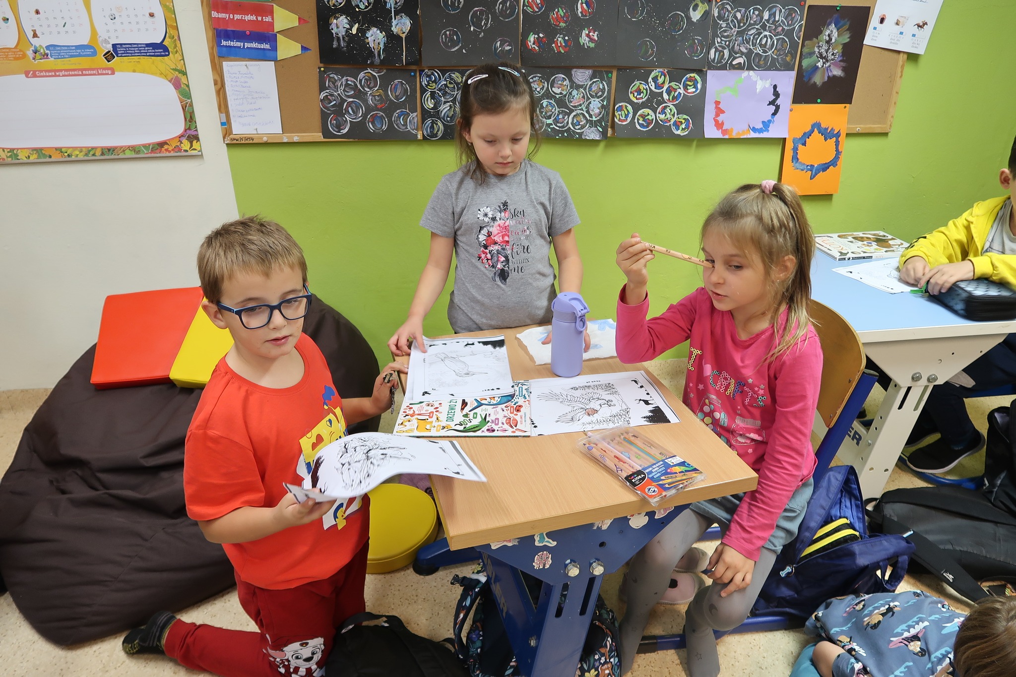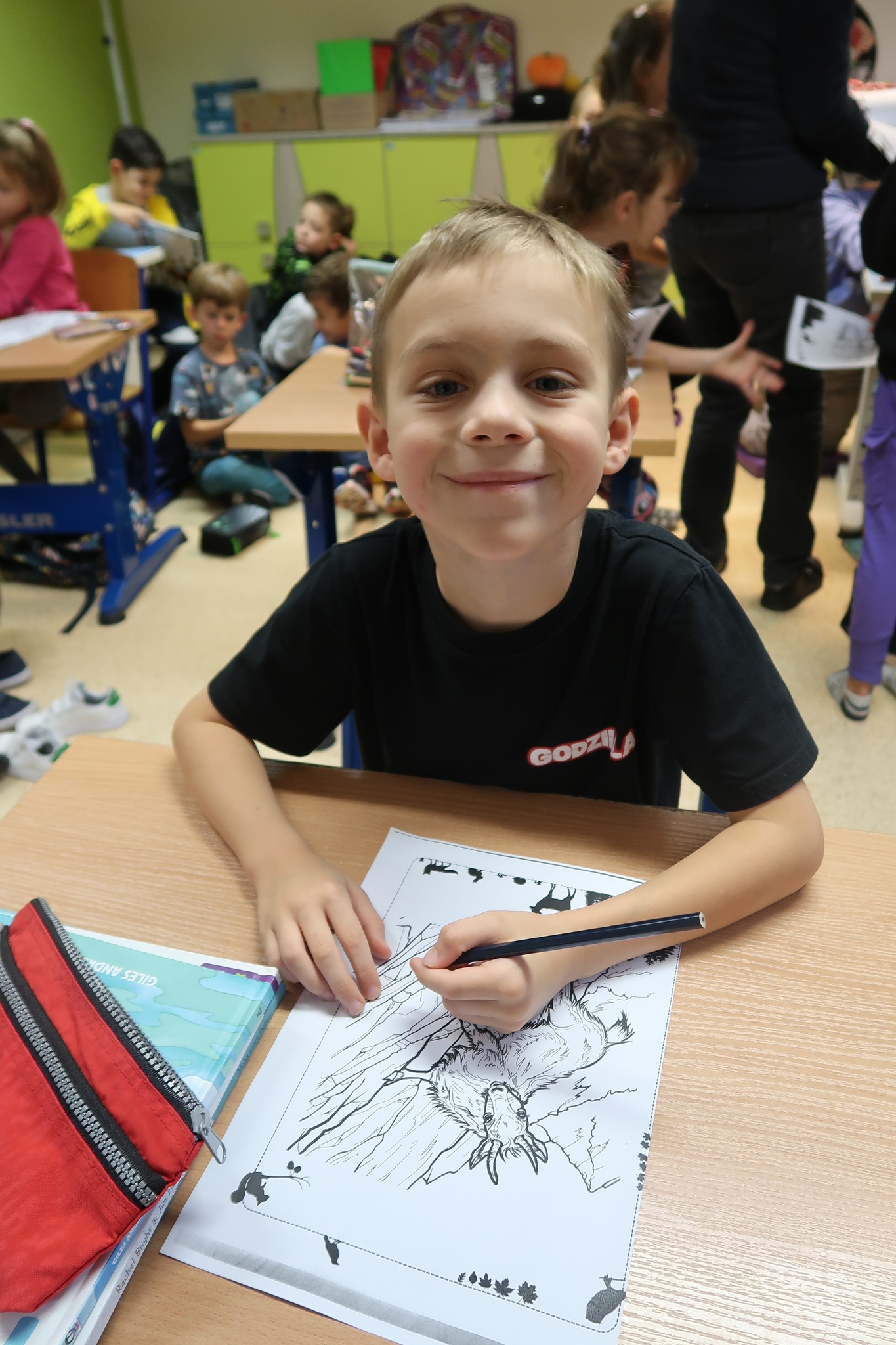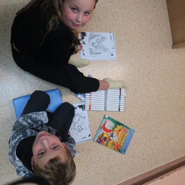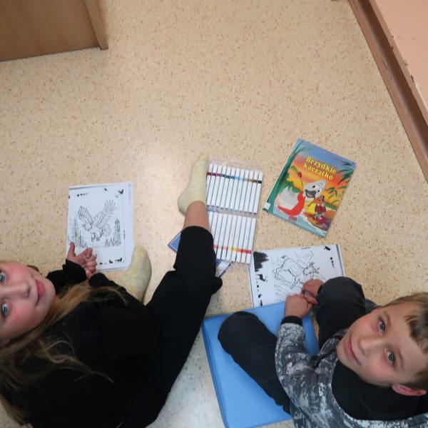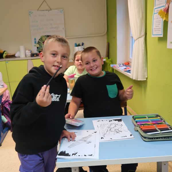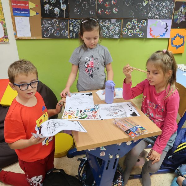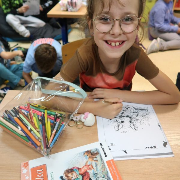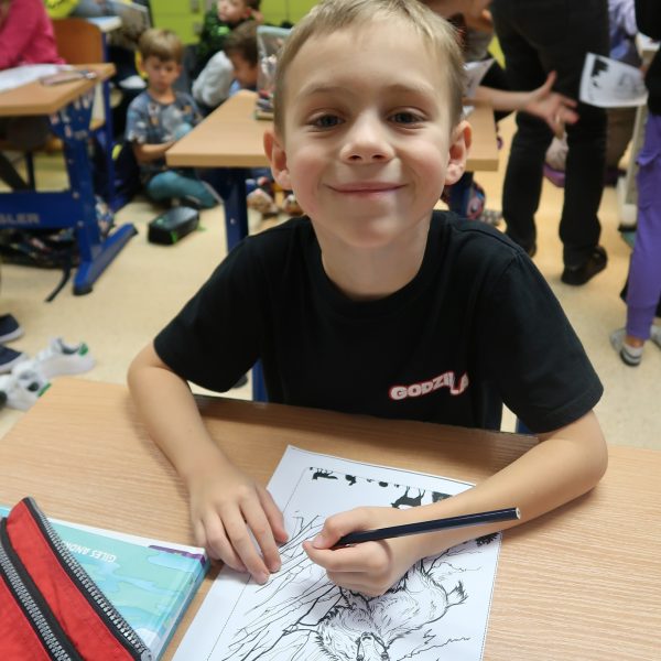 Uczniowie młodszych klas prezentowali swoją ulubioną książkę, opowiadali o tym, jakie zwierzęta znają z książek oraz o tym, jakie przygody przeżyli ze swoimi zwierzętami. Wykonywali pracę plastyczną na bazie kolorowanki ukazującej leśne zwierzęta stworzonej przy udziale sztucznej inteligencji