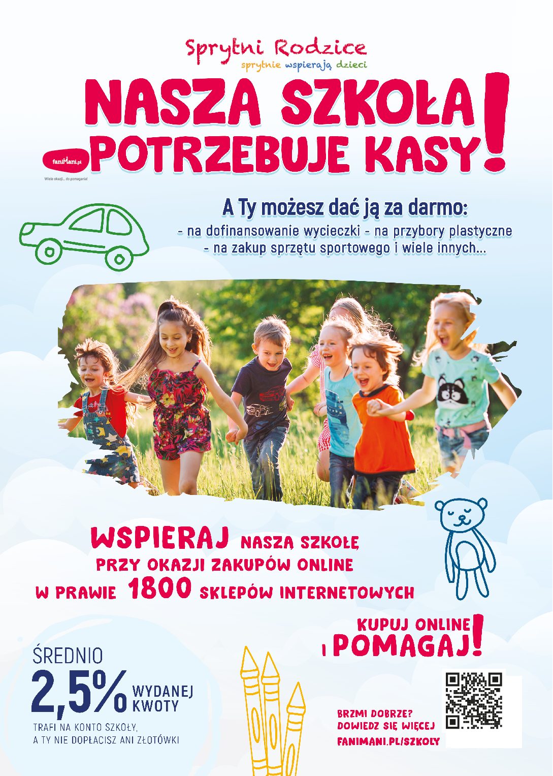 Wspieraj bezpłatnie szkołę Twojego dziecka przy okazji zakupów online. 1805 sklepów internetowych dzieli się zyskiem i dofinansowuje szkolne wycieczki, zakup pomocy dydaktycznych czy sprzętu sportowego.
